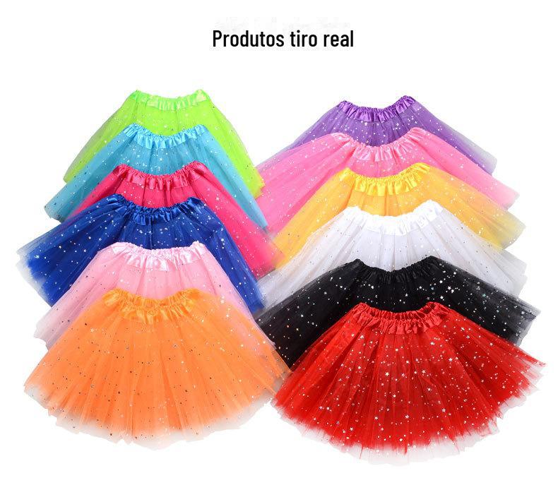 Saia de Dança Saia Adulta Europeia e Americana Saia de Malha Amazon Original Saia Tutu Balé Lantejoulas Saia Pontão 40cm