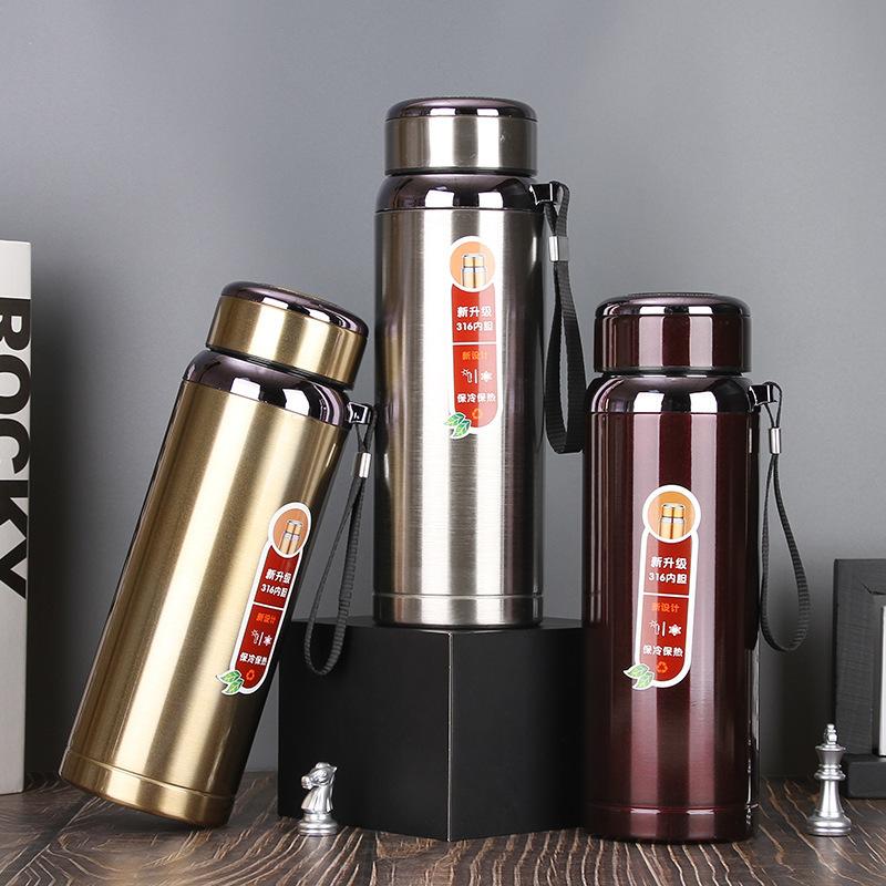 Chaleira esportiva de aço inoxidável 316 ao ar livre com corda, carro, portátil, estrela, pote, grande capacidade, vácuo, copo térmico