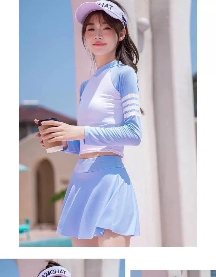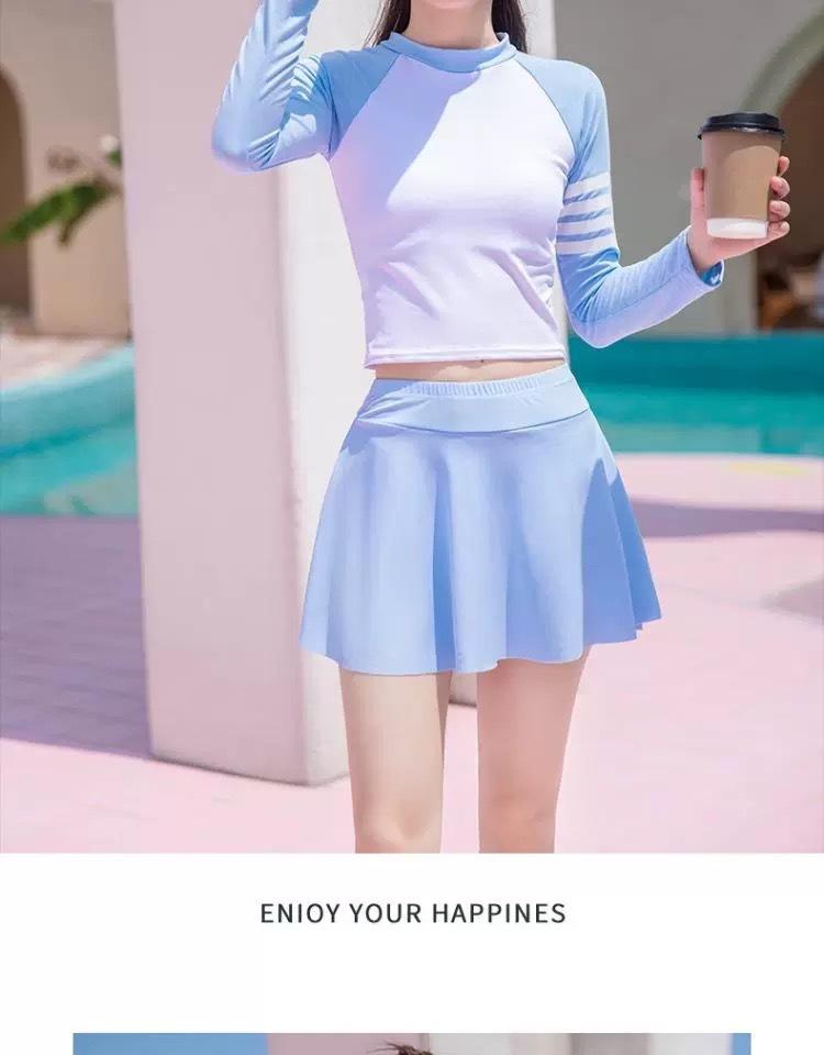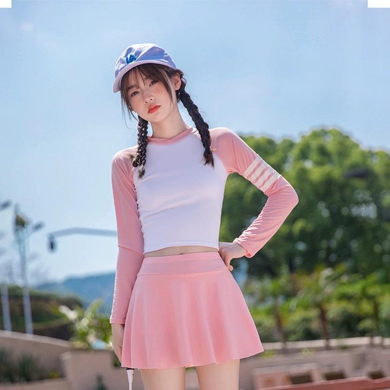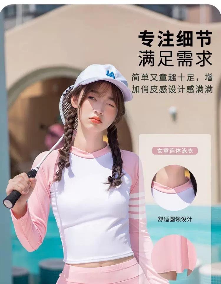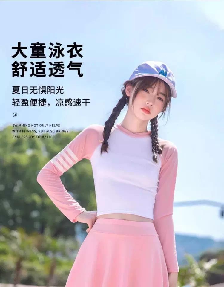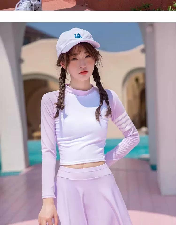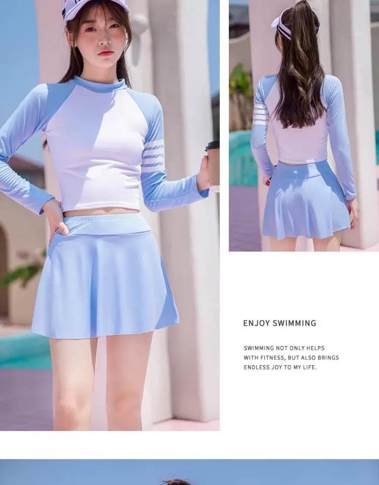 Novo Maiô Dividido Infantil Conservador Slim Belly Cobrindo Saia Esportes Manga Longa Duas Peças Maiô de Primavera Quente Atacado