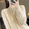 Suéter de Lã Tricotado Vazado Outono/Inverno 2025 para Mulheres, Decote V, Top Tricotado Macio e Confortável, Cardigã de Caxemira, Ajuste Slim