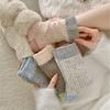 Meias de estilo coreano femininas outono e inverno bege meias de tubo médio de linha grossa meias masculinas e femininas retrô estilo japonês meias de lã