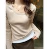BM estilo americano retro novo gola redonda asas impressas assentamento manga comprida T-shirt interior top apertado