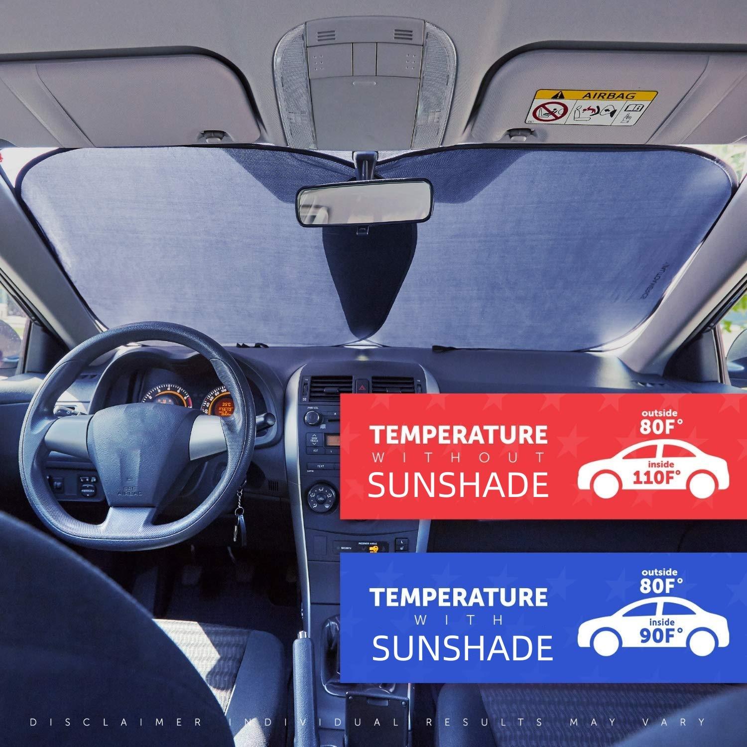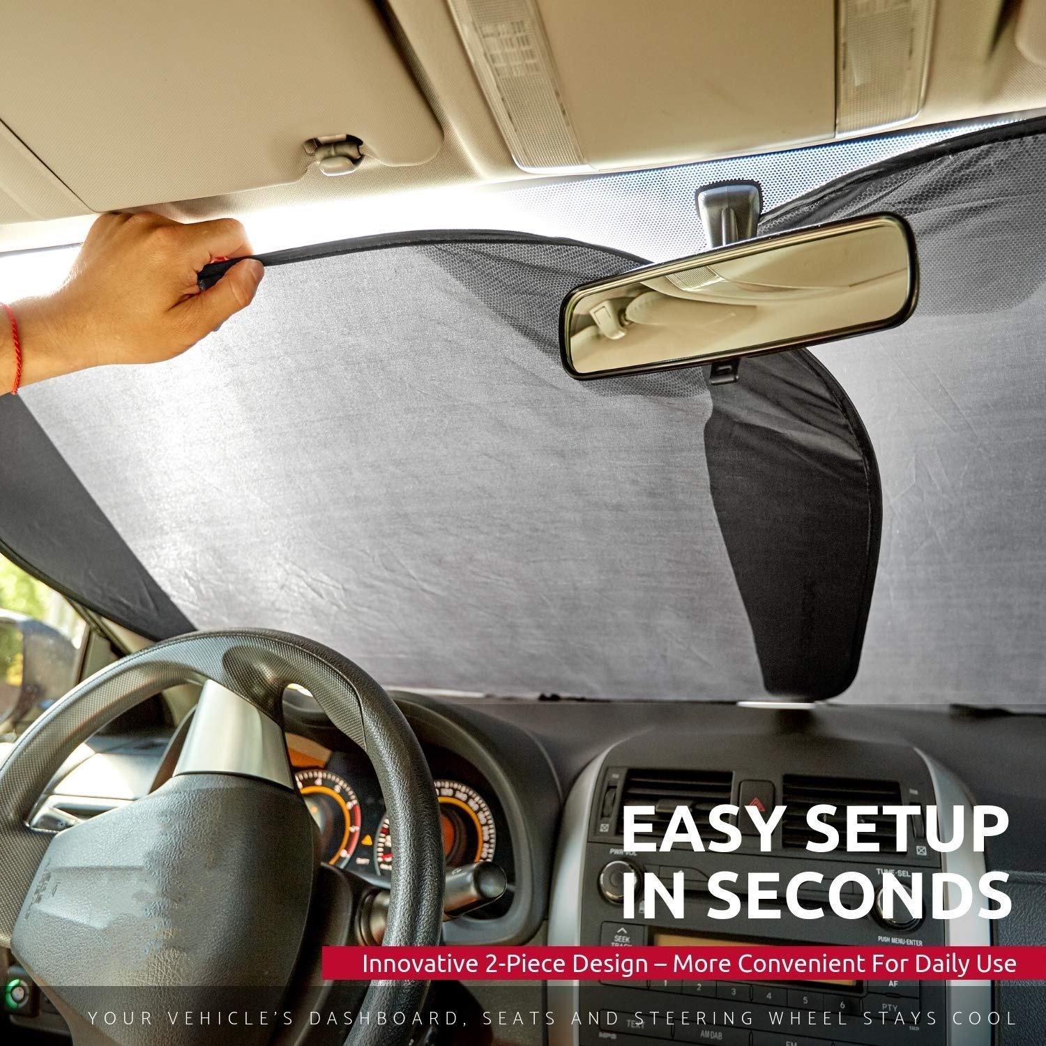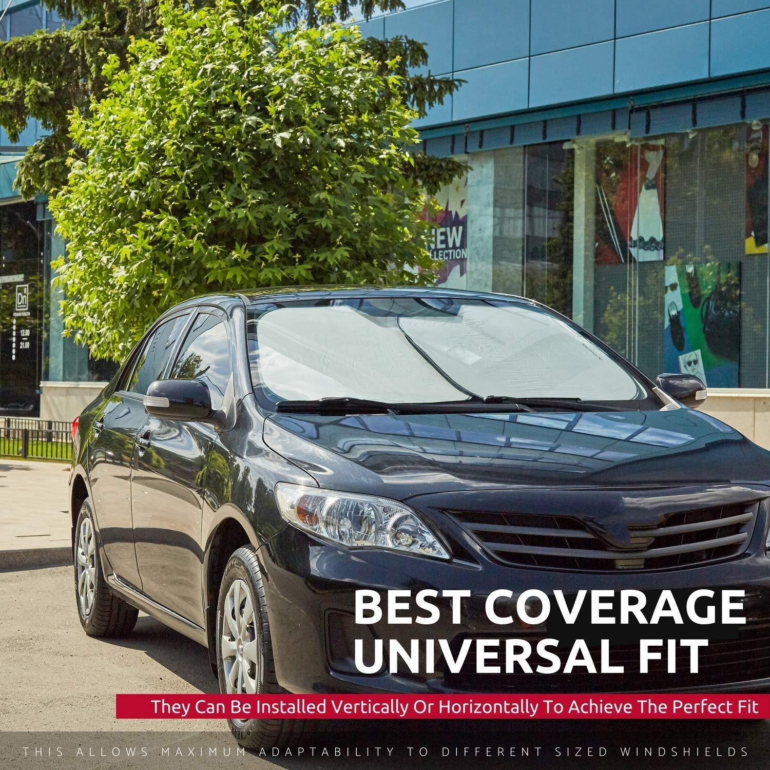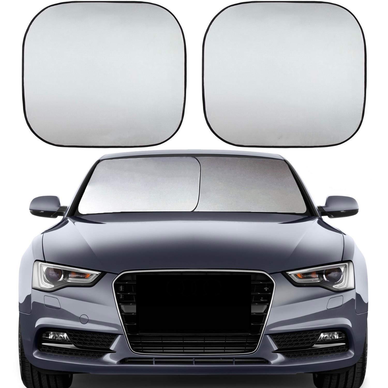 Pára-sol Dianteiro para Carro em Tecido 210t Revestido de Prata, Proteção Solar e Isolamento Térmico, Escudo Quadrado para Carro em Duas Peças com Proteção UV