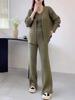 Outono e inverno transfronteiriço estilo preguiçoso terno de malha Camisa feminina solta Cardigan Sling Base Camisa Calças de perna larga longa Conjunto de três peças