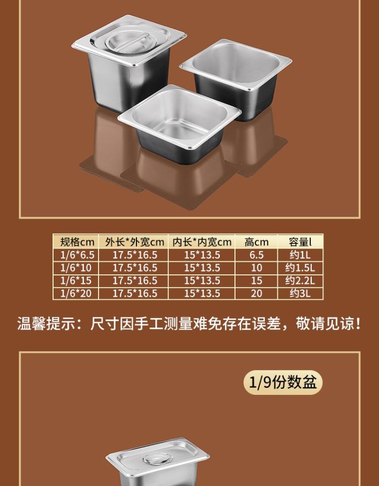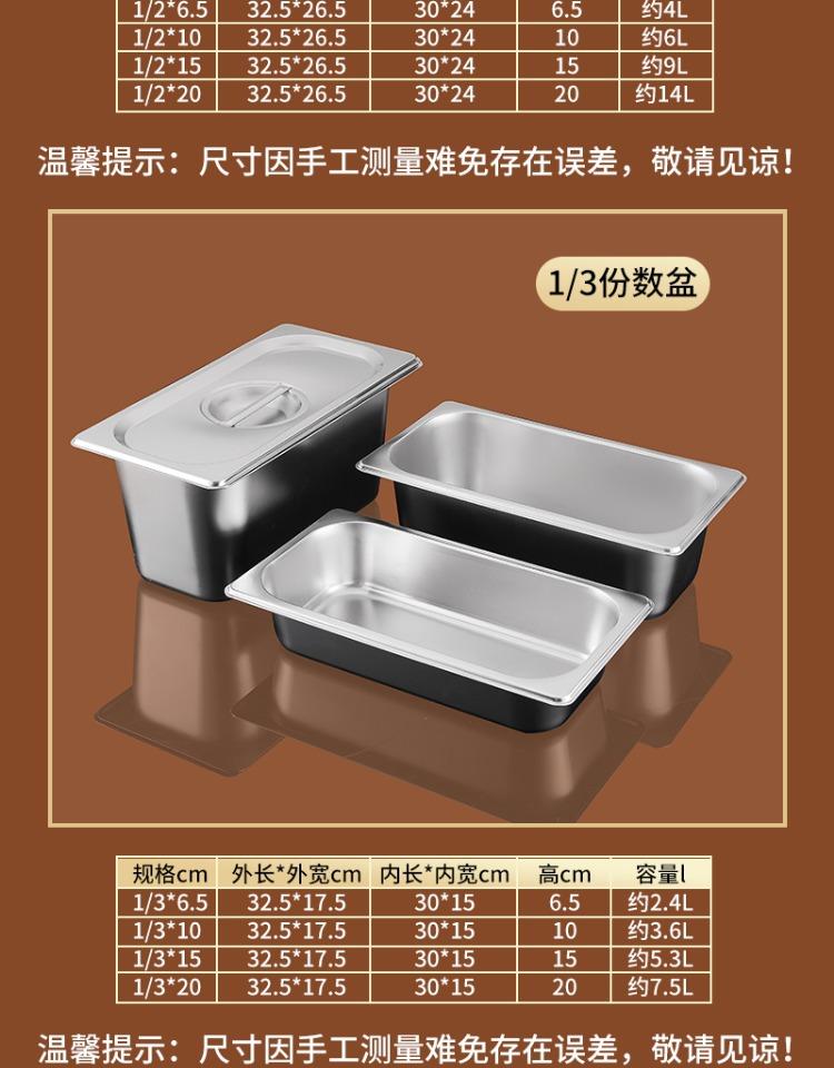 1/1*20cm high portion basin body [53X32.5X20]], 1/1*15cm high portion basin body [53X32.5X15]], 1/1*10cm high ...