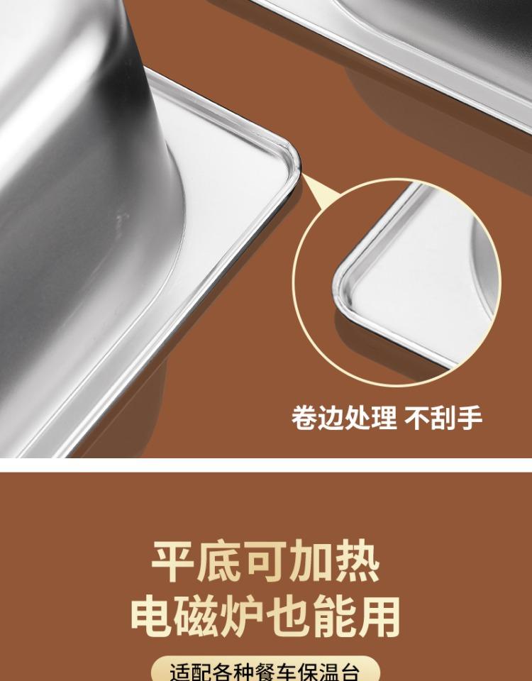 Bacia quadrada de aço inoxidável Bacia retangular com pontuação Bandeja de fundo plano Bacia de porção Bacia de arroz cozida no vapor com prato quadrado Pote de buffet