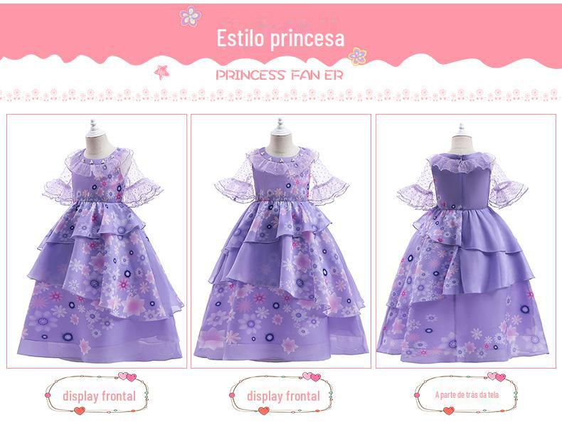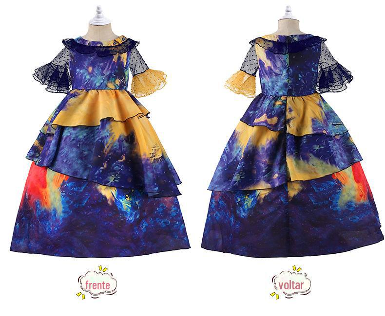 Explosões transfronteiriças Magia Casa Cheia Malha Contraste Cor Costura Vestido Festa Cosplay Vestido Infantil Vestido de Princesa para Meninas