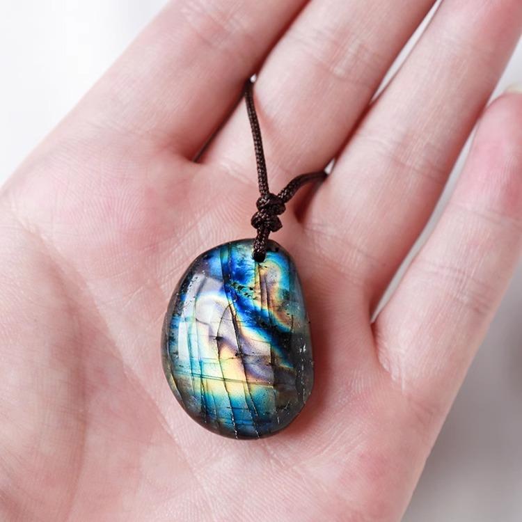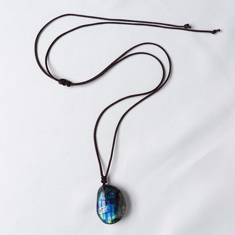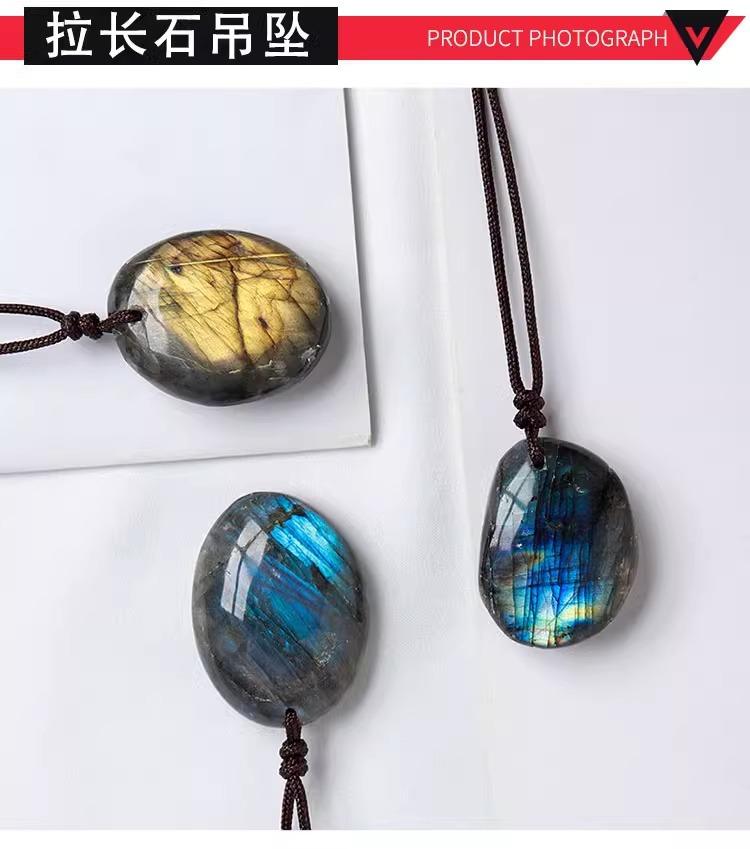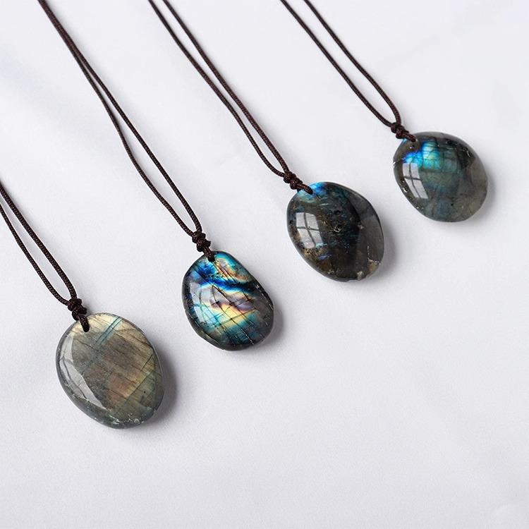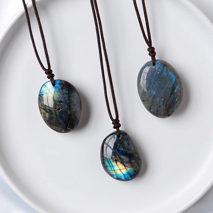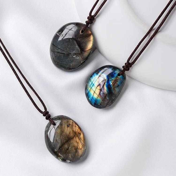 Cristal natural de pedra bruta labradorita pingente redondo estilo étnico pingente de moda masculina e feminina desmagnetizante colar jóias atacado