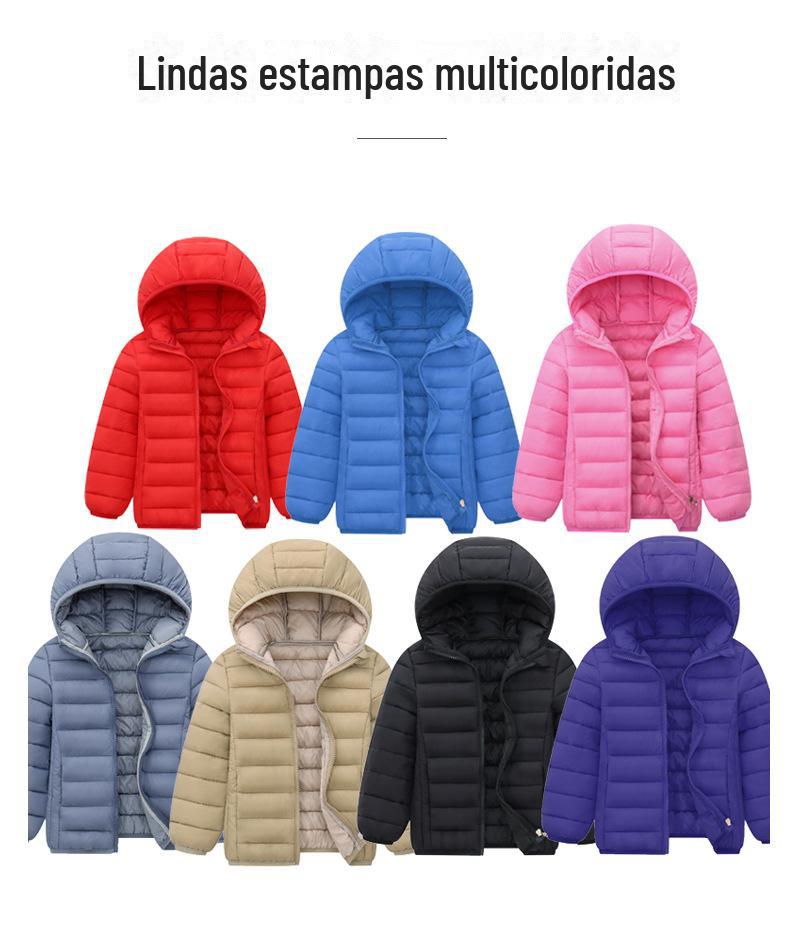 Comércio Exterior 110-180 Jaqueta Infantil Leve de Algodão com Penas para Meninos e Meninas, Estilo Curto para Crianças Mais Velhas, Casaco de Algodão para Bebê