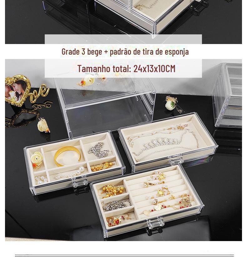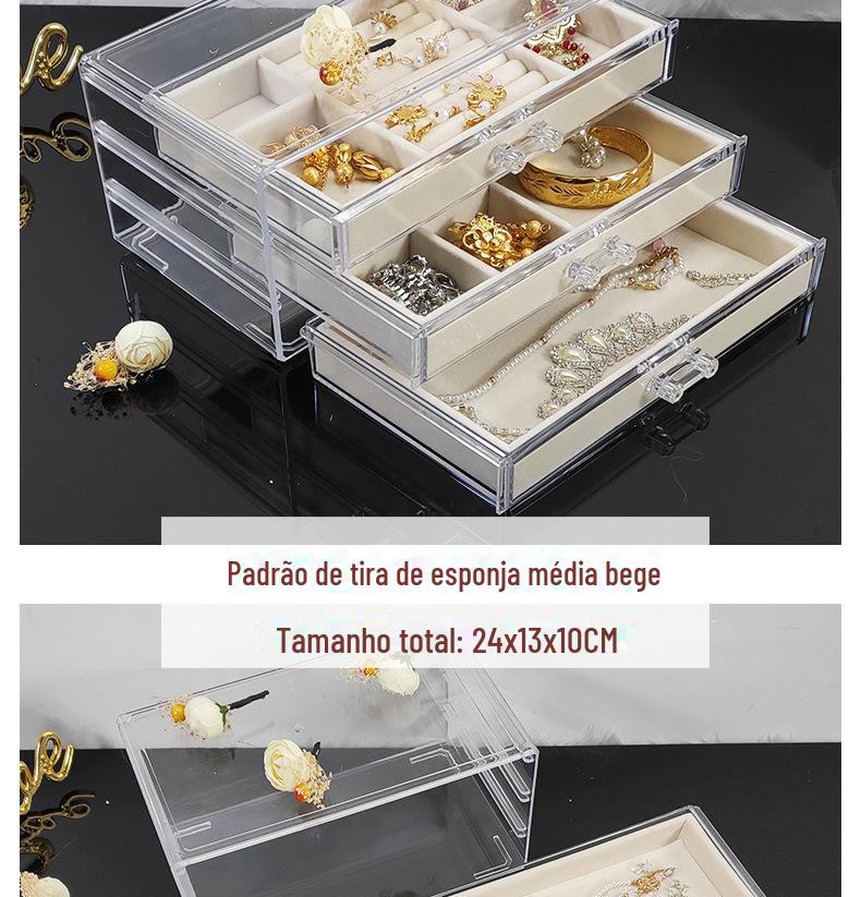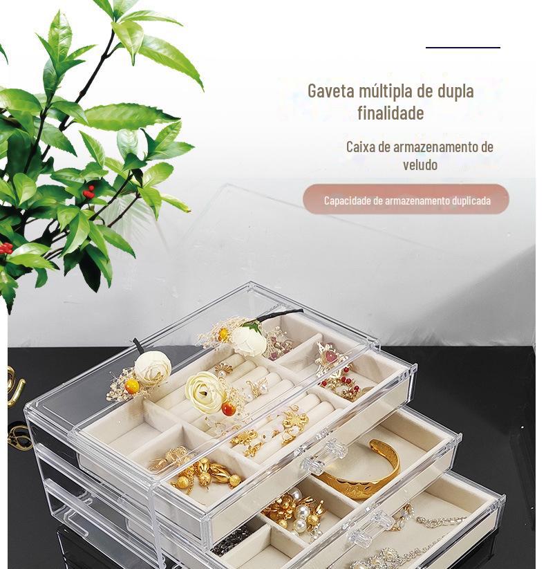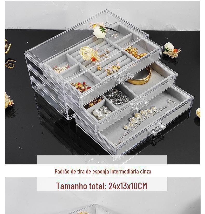 Brincos Brincos Armazenamento de Jóias Caixa Colar Acrílico Transparente Caixa de Jóias Pequena Gaveta de Jóias Mesa de Armazenamento Caixa