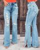 2022 Amazon Independent Station Outono Lavado Rasgado Calças Flare Jeans Calças Femininas