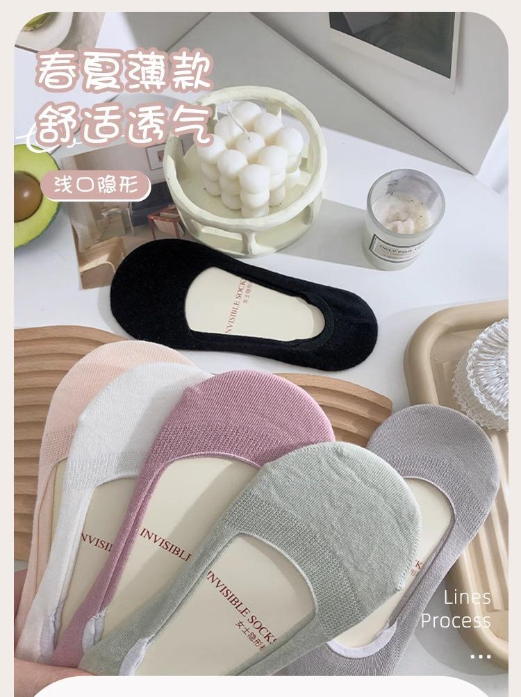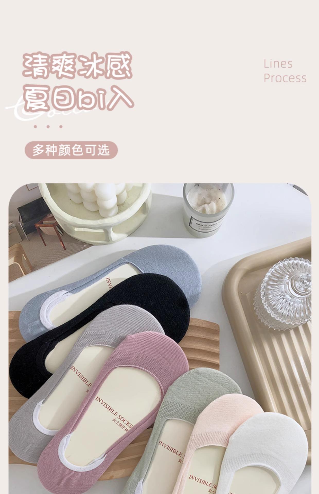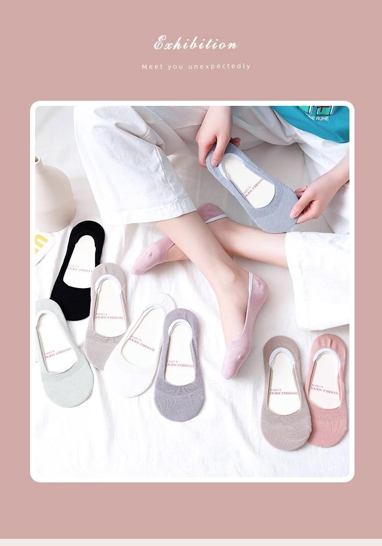Meias Sapatilha para Mulheres Cor Pura Que Não Caem Antiderrapantes Finas de Verão Cano Baixo Meias Rasas Meias Invisíveis de Verão para Mulheres Estilo Verão