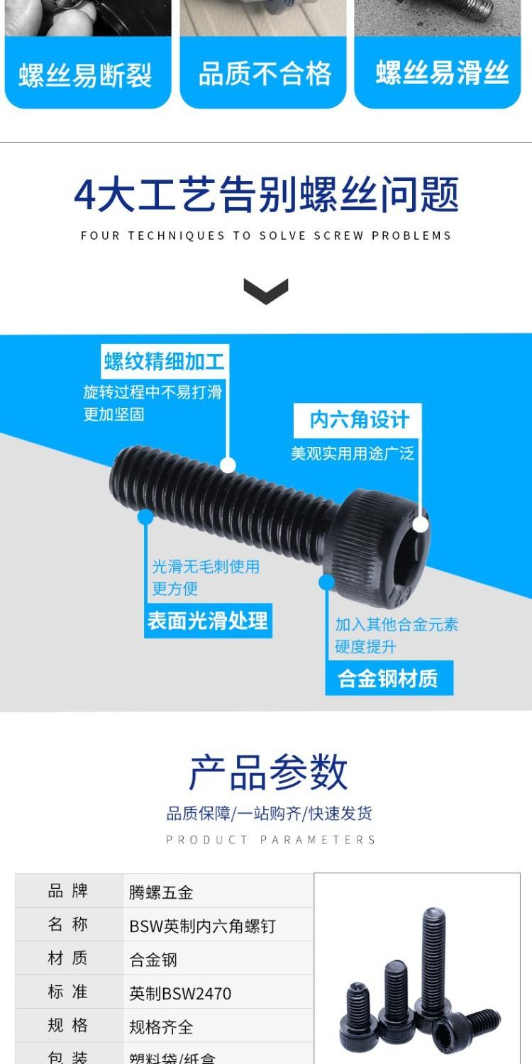 5/16-18 Dentes 1/4-20 Dentes 12,9 Grau BSW Polegadas Parafuso de Soquete Hexagonal Cabeça Cilíndrica Parafuso de Soquete Hexagonal Cabeça de Copo