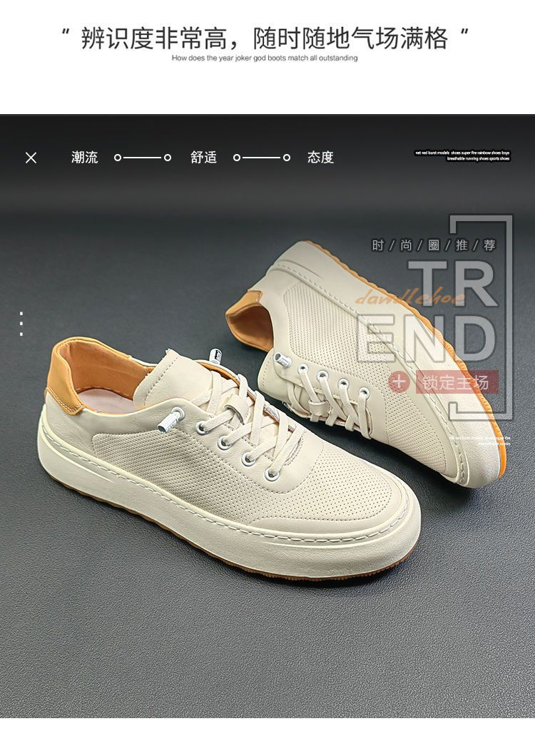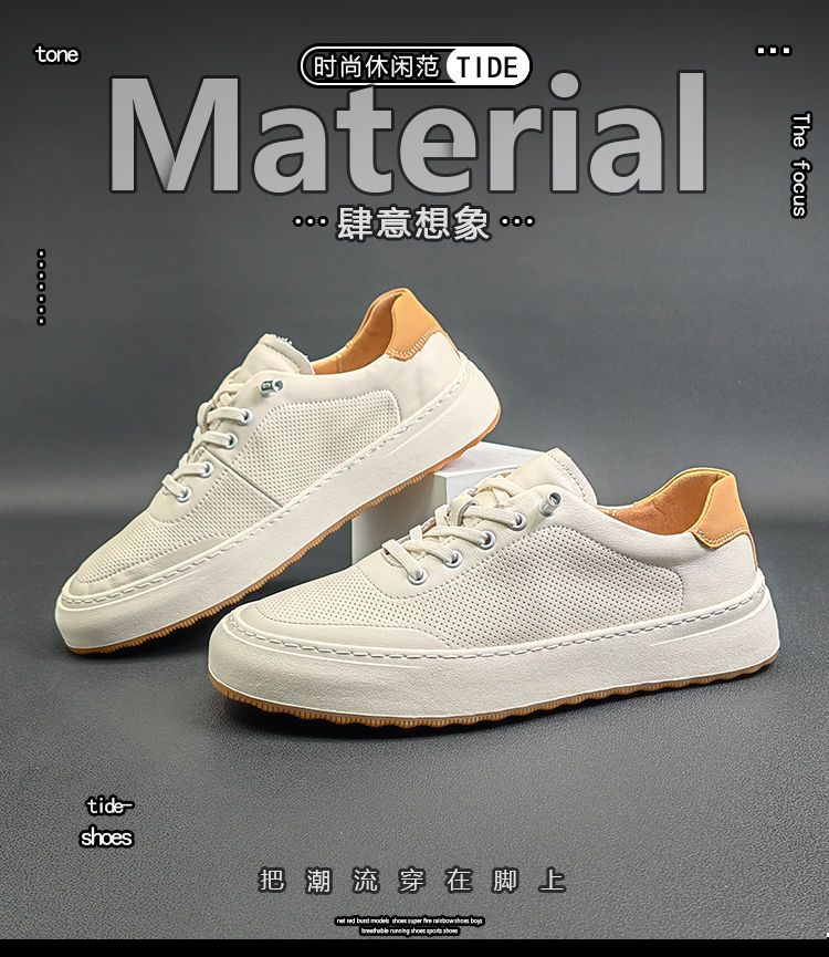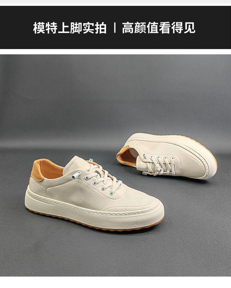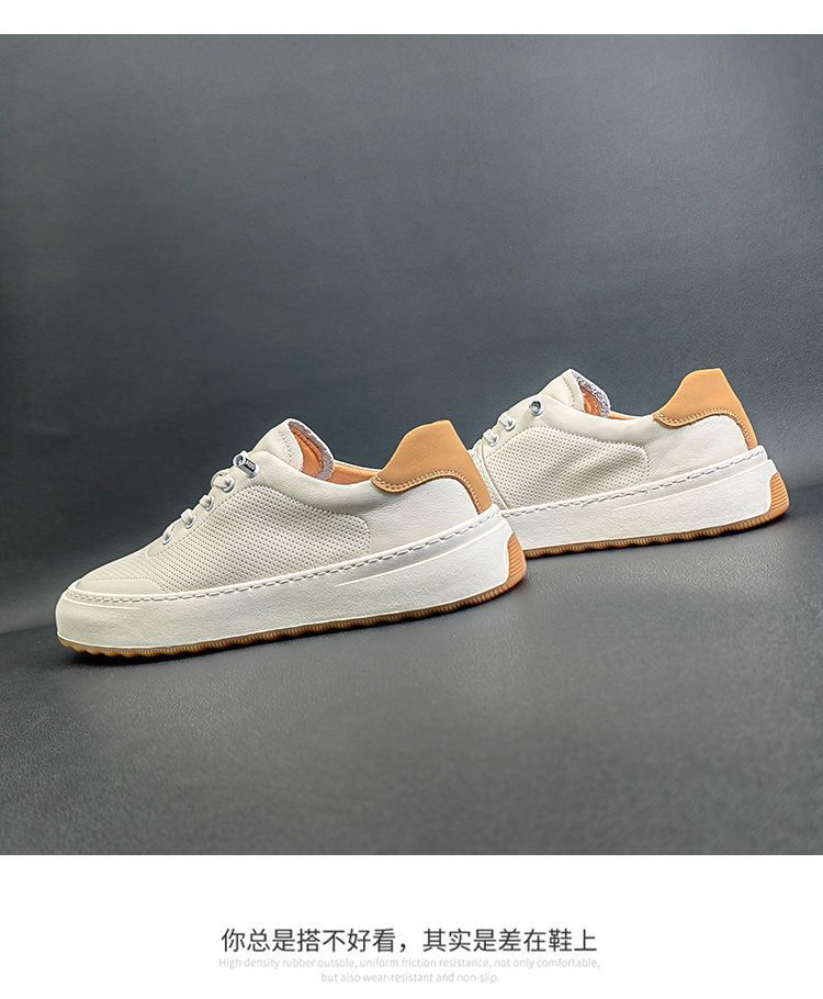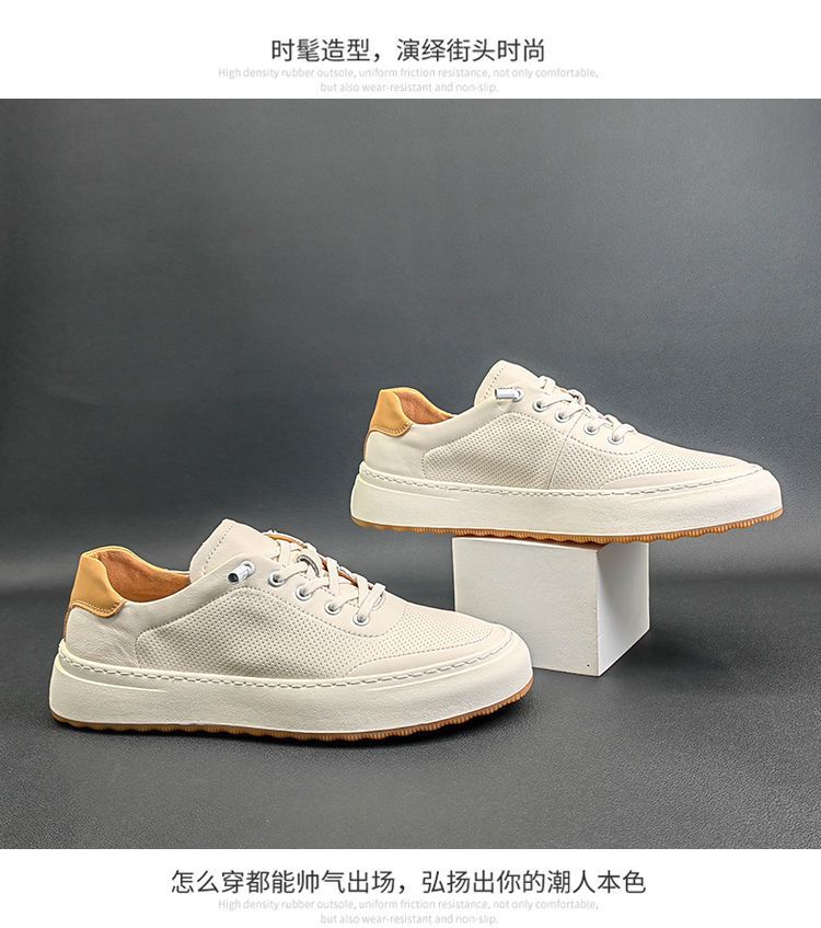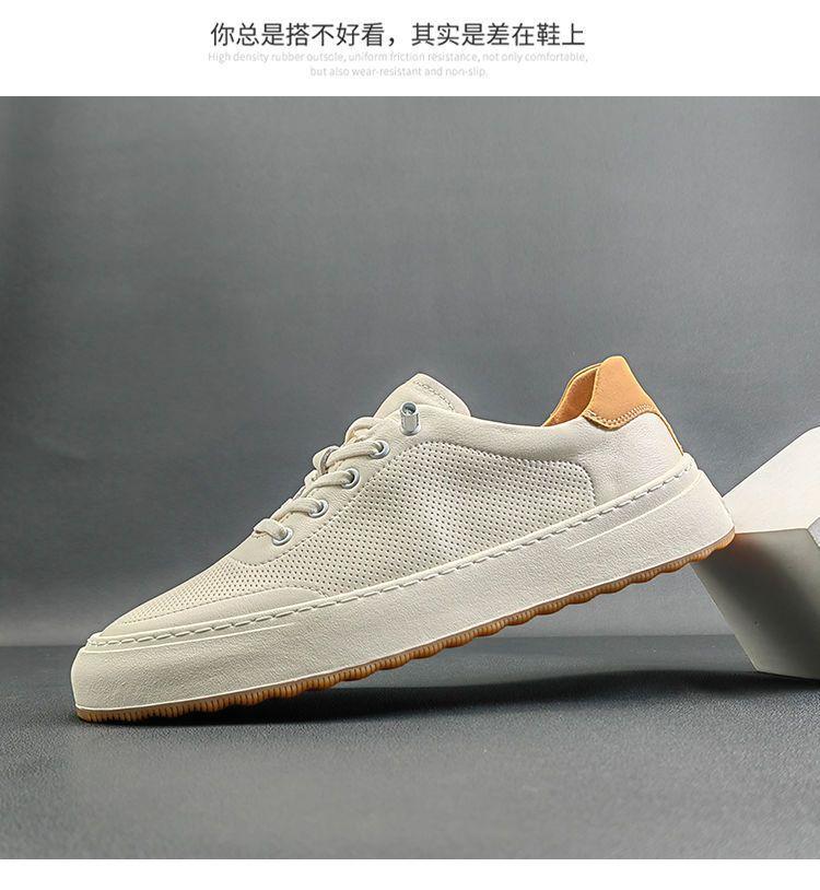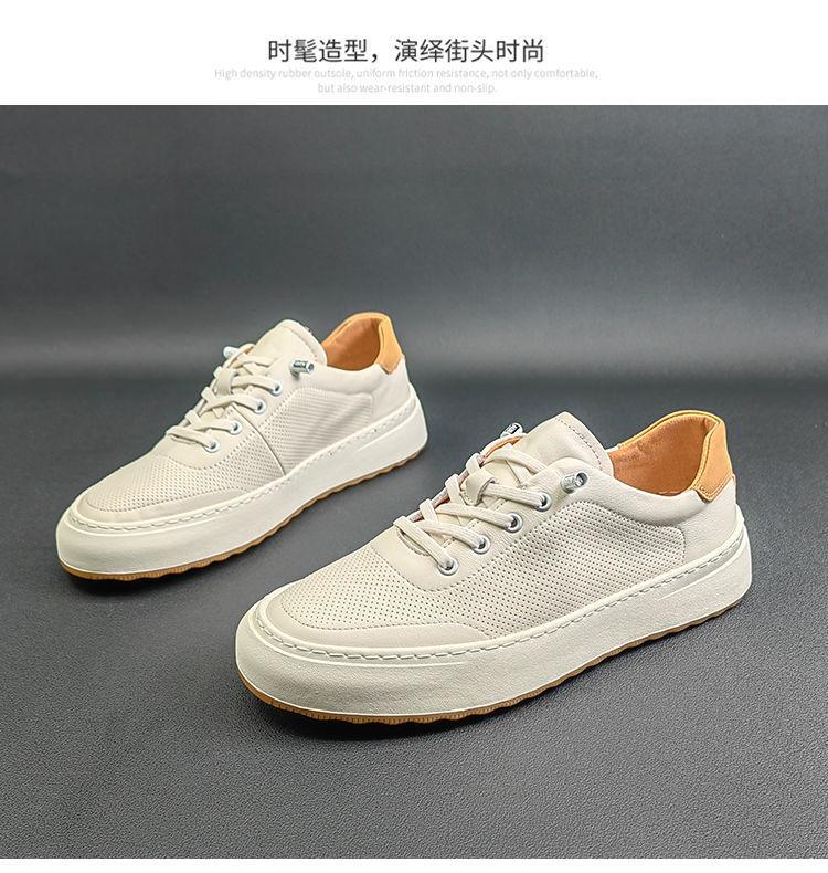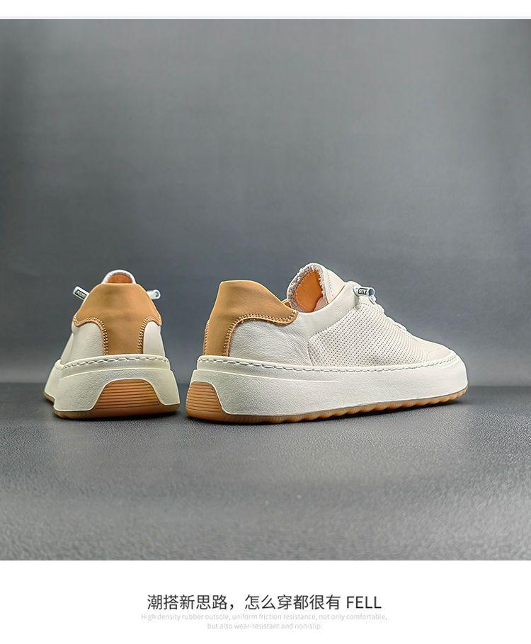 2024 Novos Sapatos Brancos de Couro de Vaca de Verão para Homens Couro Genuíno Respirável Tênis Casuais Simples Japoneses