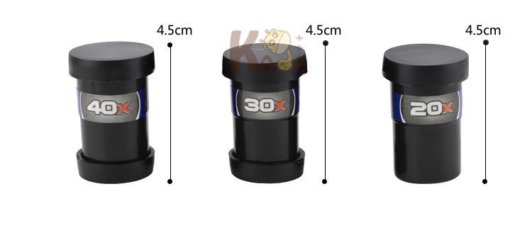 O produto é equipado com oculares de 40x, 30x e 20x para atender às diferentes necessidades dos alunos.