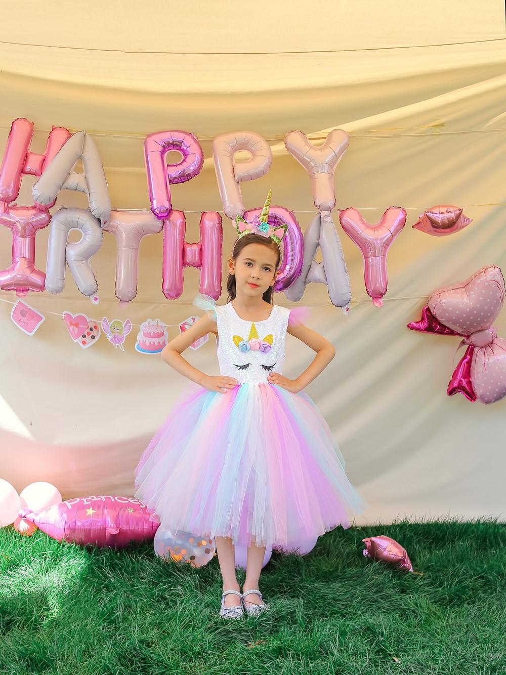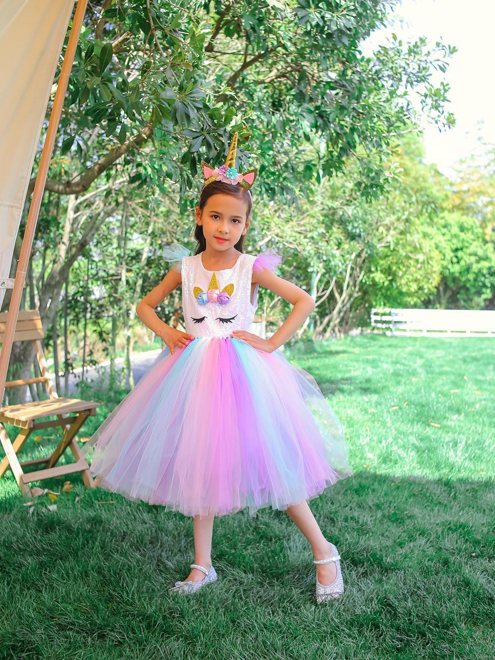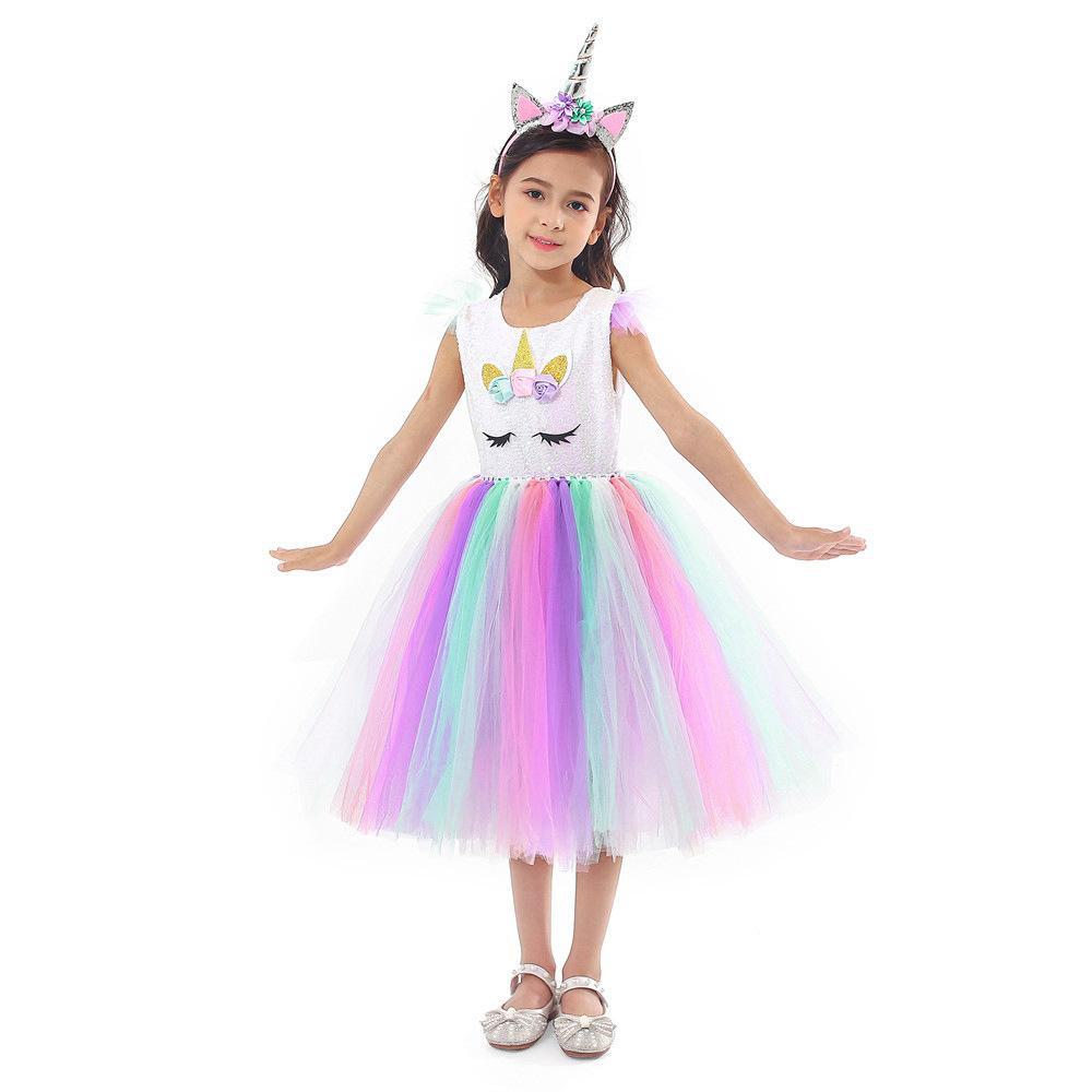 Vestido de tutu unicórnio transfronteiriço Halloween vestido de malha com brilho LED vestido de princesa vestido de unicórnio para meninas