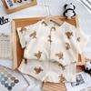 Roupas de verão para casa das crianças terno da menina terno dos desenhos animados impressão de manga comprida calças pijamas meninos do bebê roupas de ar condicionado elegante