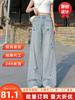 Compre Pantalones de Mezclilla Azules Anchos de Pierna Vintage para Mujer, Nuevo Estilo Verano 2026, que Alargan la Figura y Adelgazan, Bordados, Pantalones Largos de Corte Holgado para Figuras Pequeñas no atacado no Joom.pro