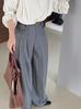 Jiangzuo Advanced Sense Cinza Larga- perna terno calças mulheres outono novo cintura alta emagrecimento calças casuais calças de perna reta 6096