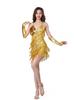 Vestido com lantejoulas e borlas, decote em V, vestido para dança latina, vestido para apresentação de dança, vestido para competição de palco