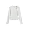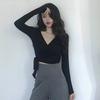 BM Style V-Neck Lace Bow Pure Waffle Camiseta de manga comprida feminina BM Slim-Fit Slimming Base Shirt Top