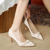 Sapatos de casamento de cor champanhe estilo francês Nicho feminino 2024 Elegante Pérola Adulto Cerimônia Sapatos de dama de honra Sapatos de salto alto de camada única