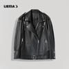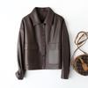 Jaqueta de Couro Tamanho Grande para Mulheres, Temperamento Trendy, Jaqueta Longa Preta da Moda para Primavera e Outono, Atacado de Jaquetas de Couro Genuíno