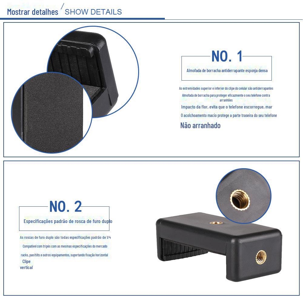 Clipe de telefone móvel âncora de transmissão ao vivo suporte de furo duplo clipe de telefone móvel preguiçoso Tripé fixo esponja E clipe