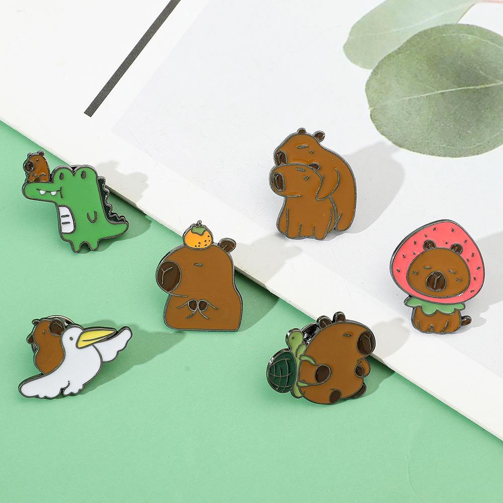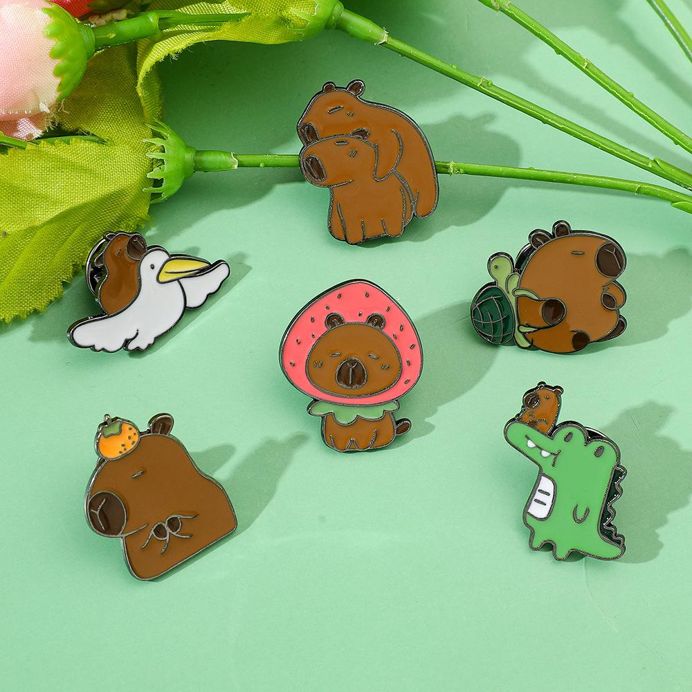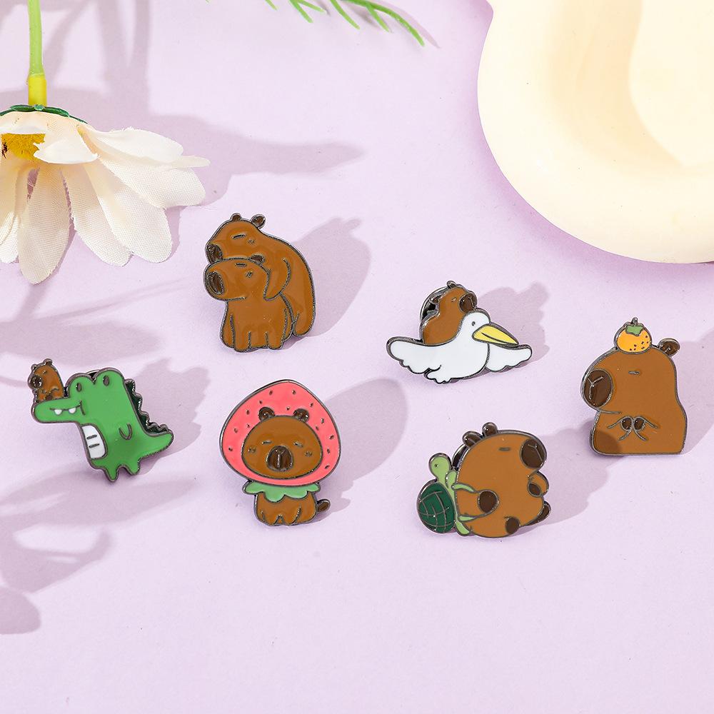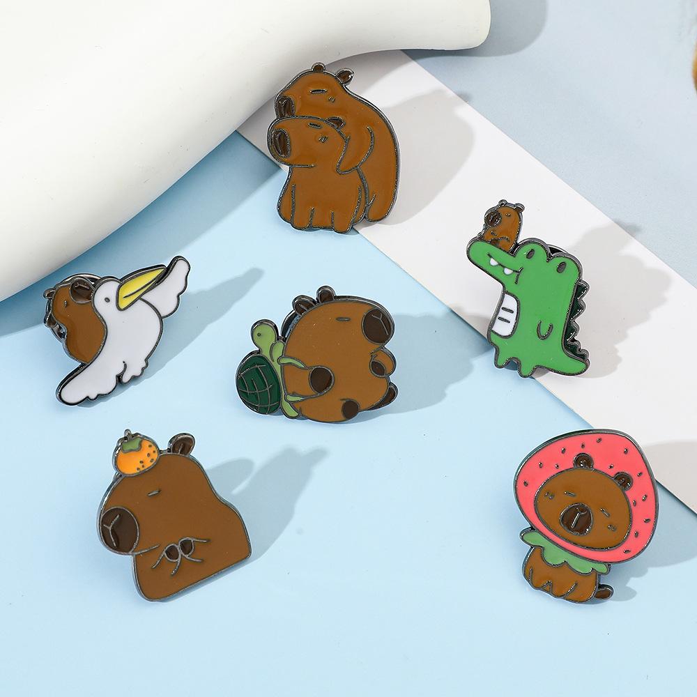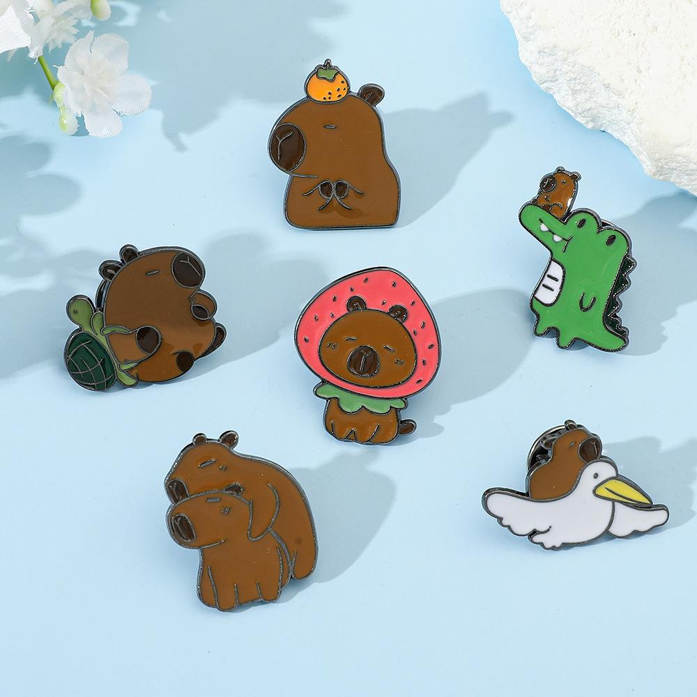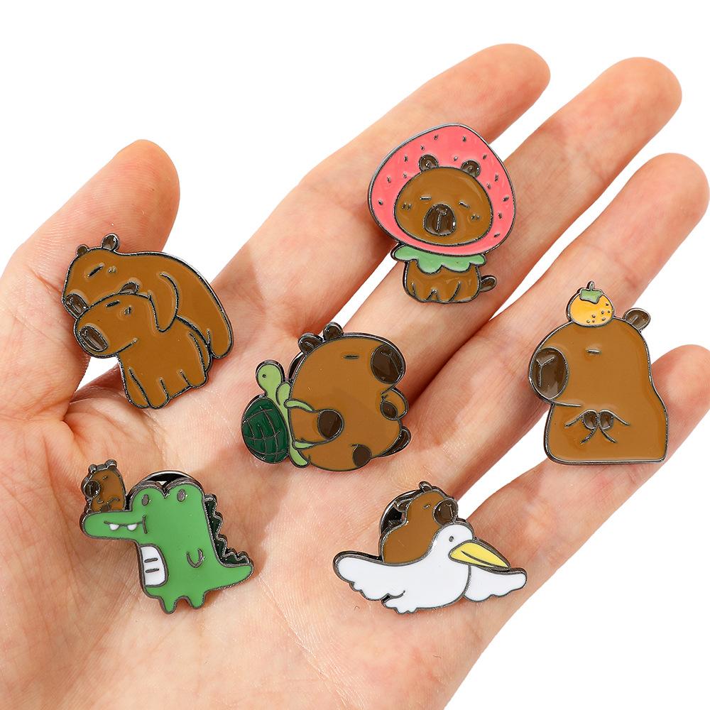 Bonito Dos Desenhos Animados Macio Bonito Kapibala Emblema De Metal Pequeno Animal Capivara Forma Liga Broche Acessórios Pin