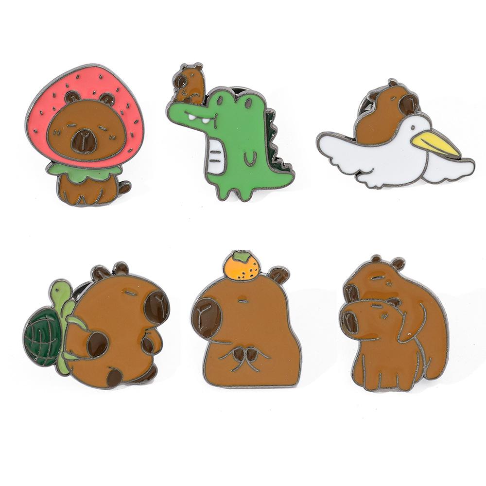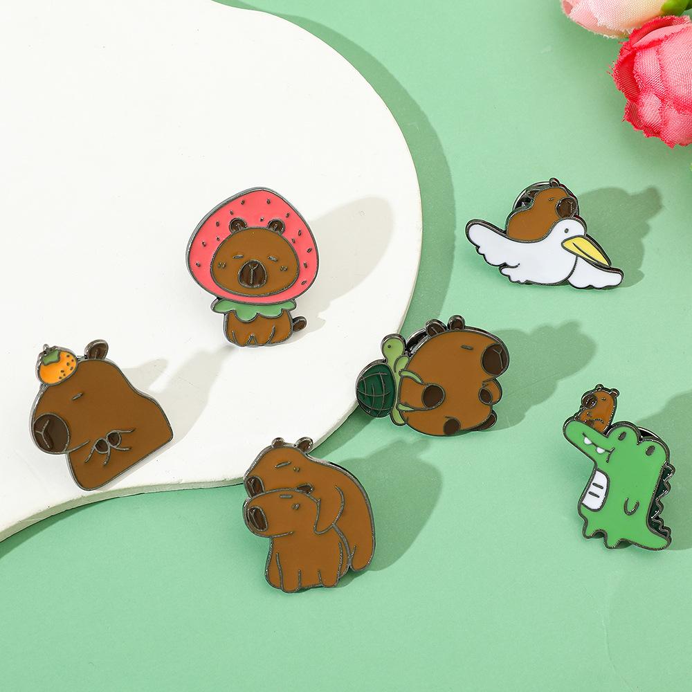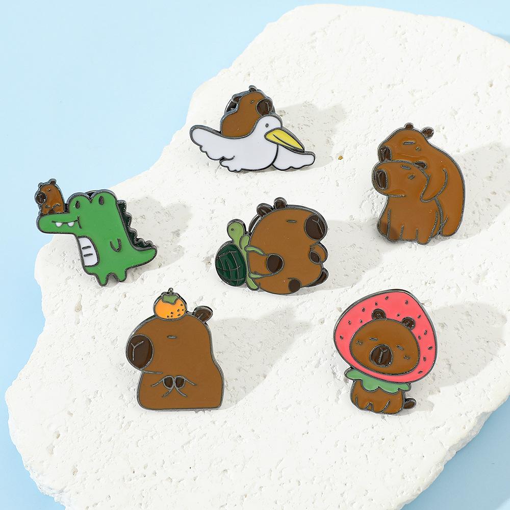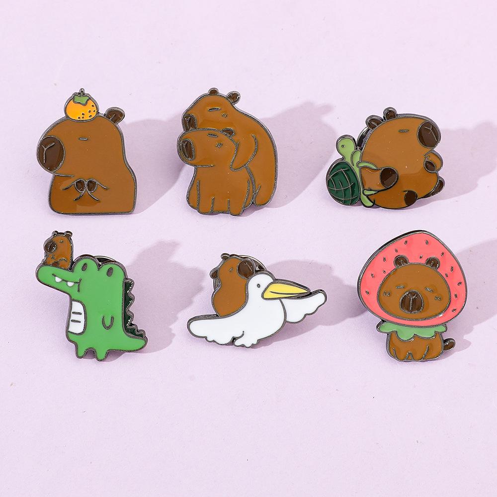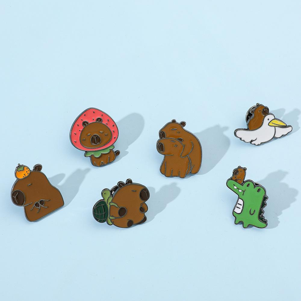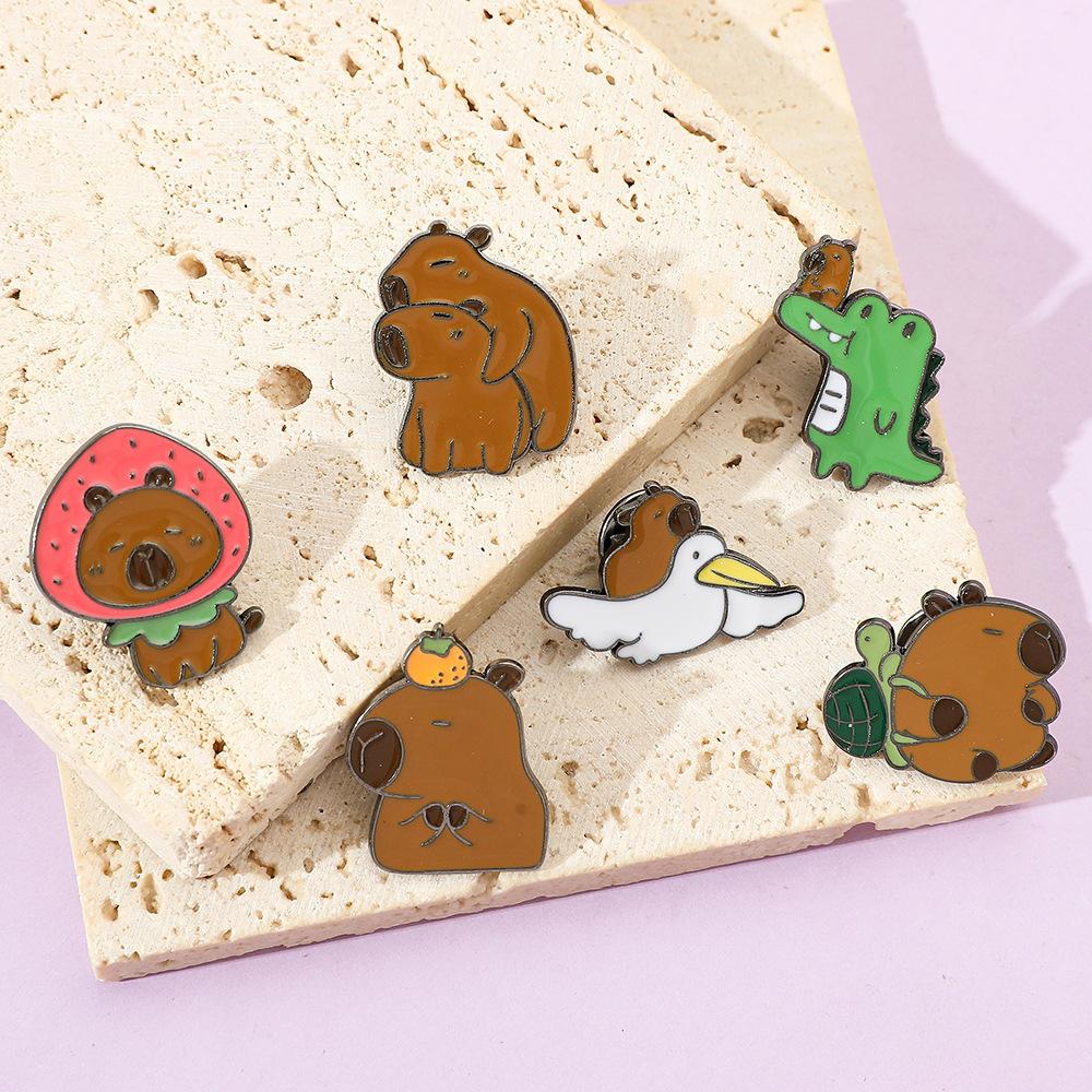 Bonito Dos Desenhos Animados Macio Bonito Kapibala Emblema De Metal Pequeno Animal Capivara Forma Liga Broche Acessórios Pin