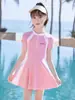 Fato de banho infantil para meninas 2024 Novo estilo Roupa de banho estilo ocidental para meninas Médio e grande Roupa de banho conservadora para crianças com almofada no peito