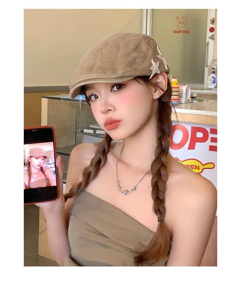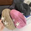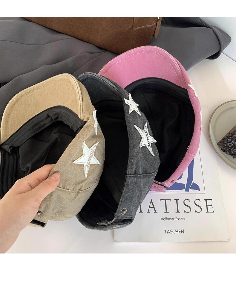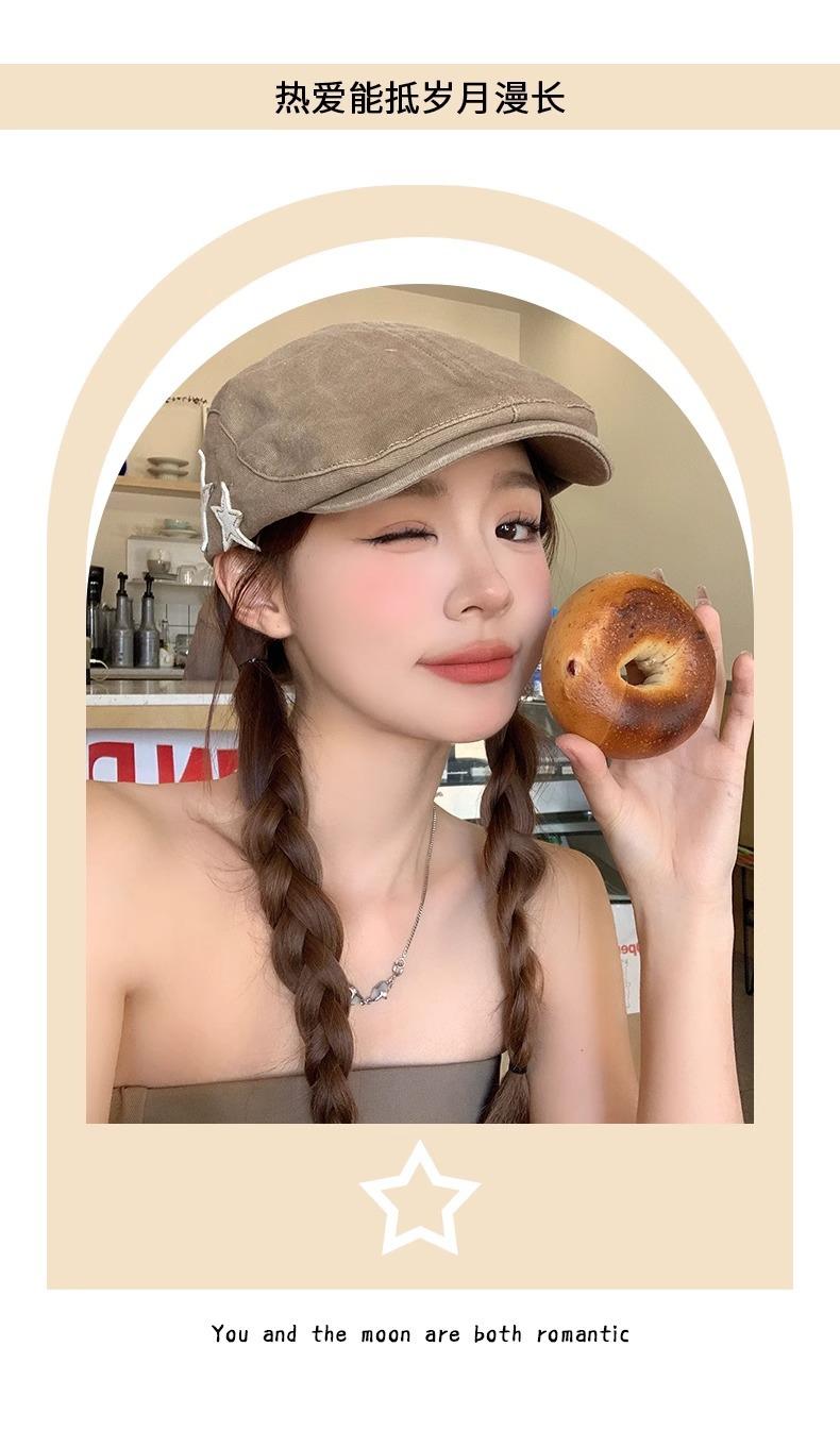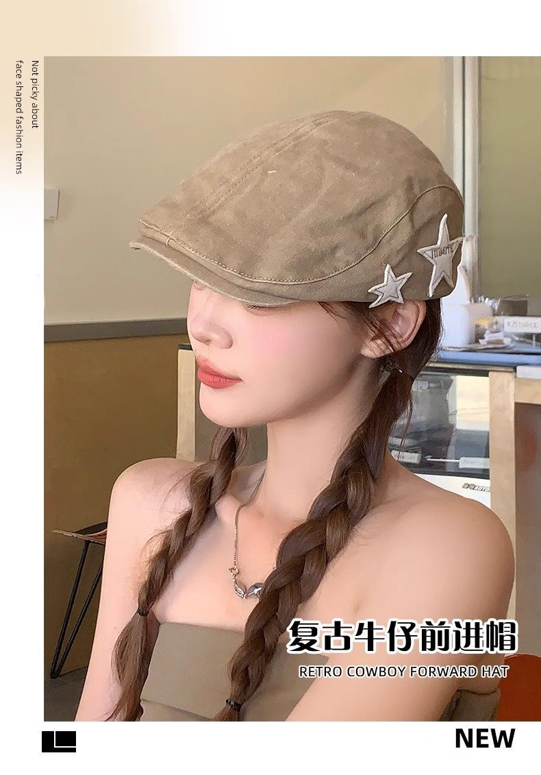 Boné Americano Retrô Estrela para Frente para Mulheres, Boina Britânica Casual Simples Versátil que Afina o Rosto, Chapéu Y2K Lavado