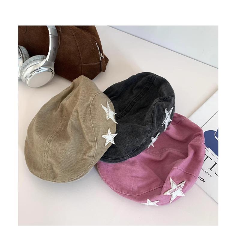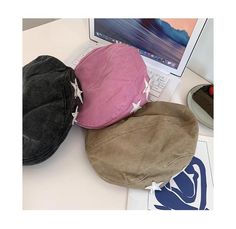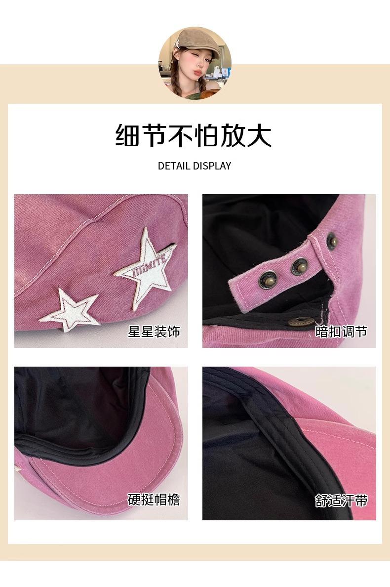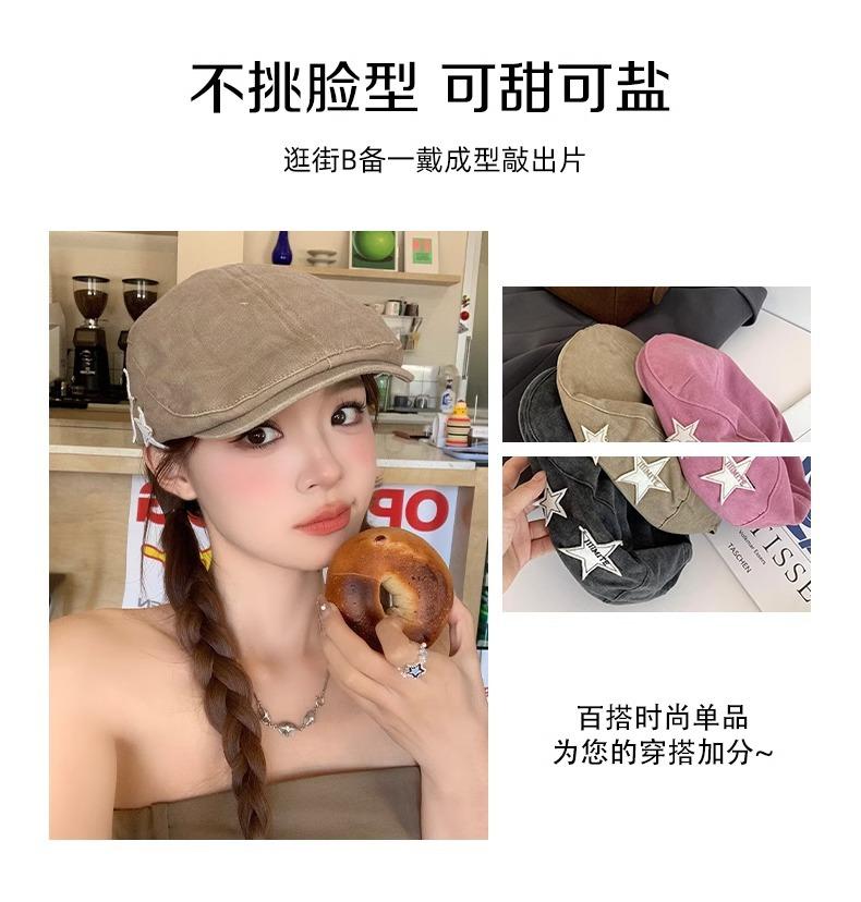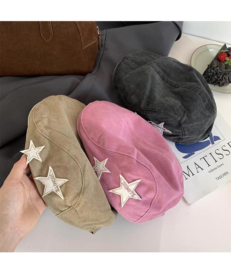 Boné Americano Retrô Estrela para Frente para Mulheres, Boina Britânica Casual Simples Versátil que Afina o Rosto, Chapéu Y2K Lavado