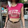 Estilo Bm Novo Americano Retrô Nova York Letra Estampada Top Curto de Cintura Alta Sexy Camiseta de Manga Curta para Mulheres Verão