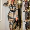 Outono 2024 Nova Amazônia Europeia e Americana Moda Feminina Transfronteiriça Lapela Estampada Slim-fit Manga Comprida Vestido de Quadril