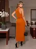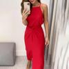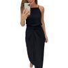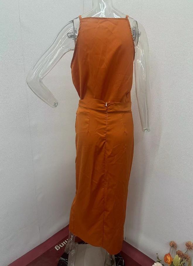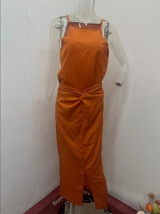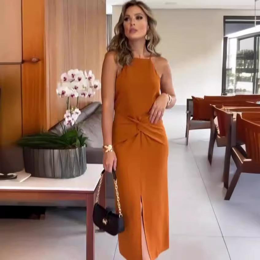 2024 Verão Nova Europa e Americana Amazonas Transfronteiriça Feminina Cor Sólida Cintura Plissada Design Suspensórios Vestido de Quadril