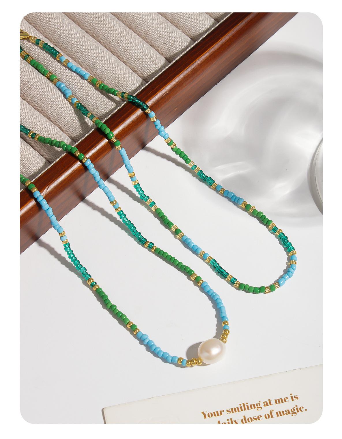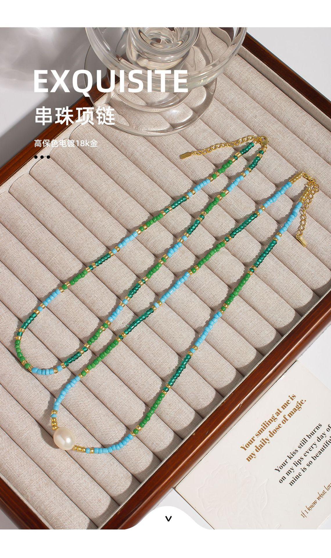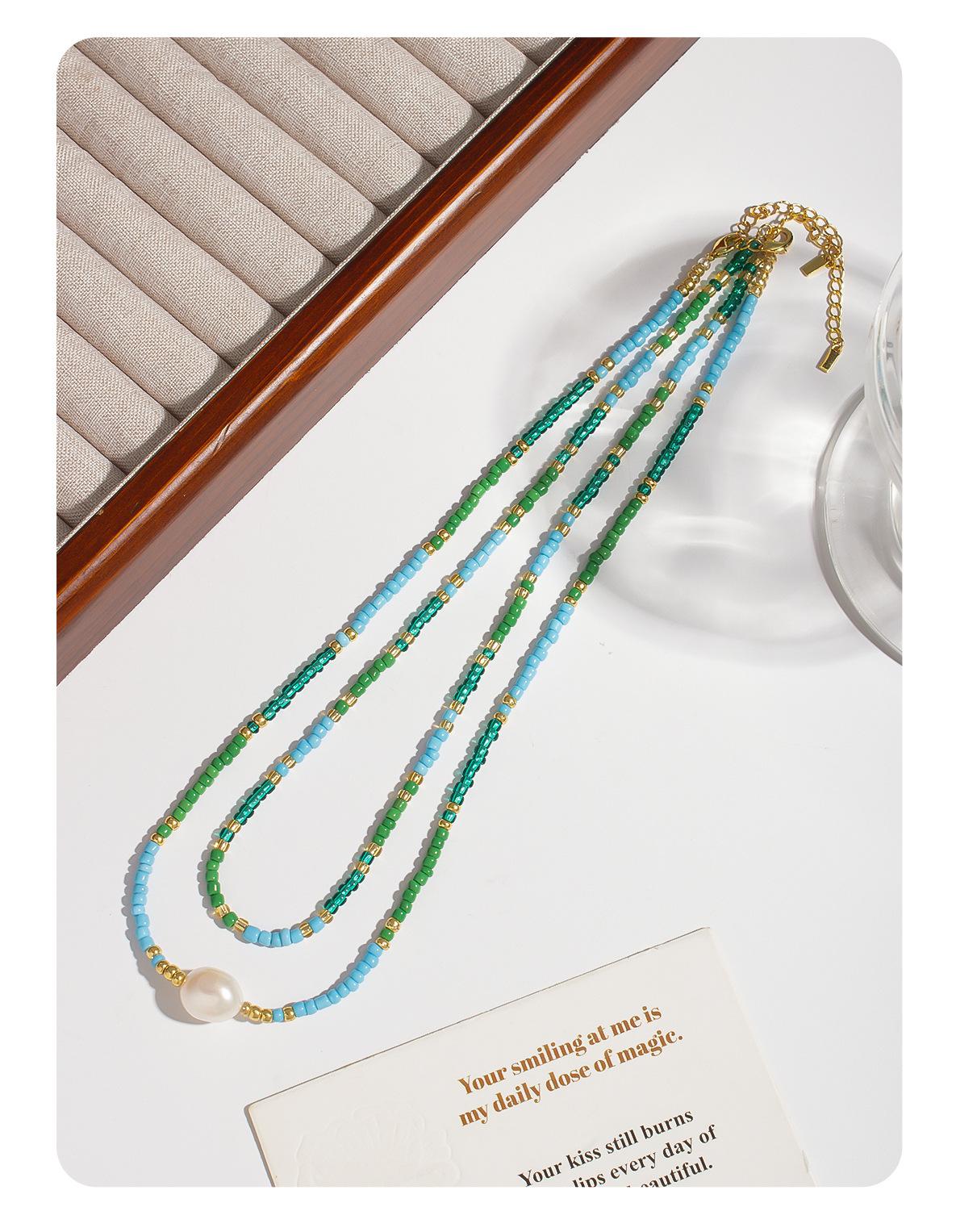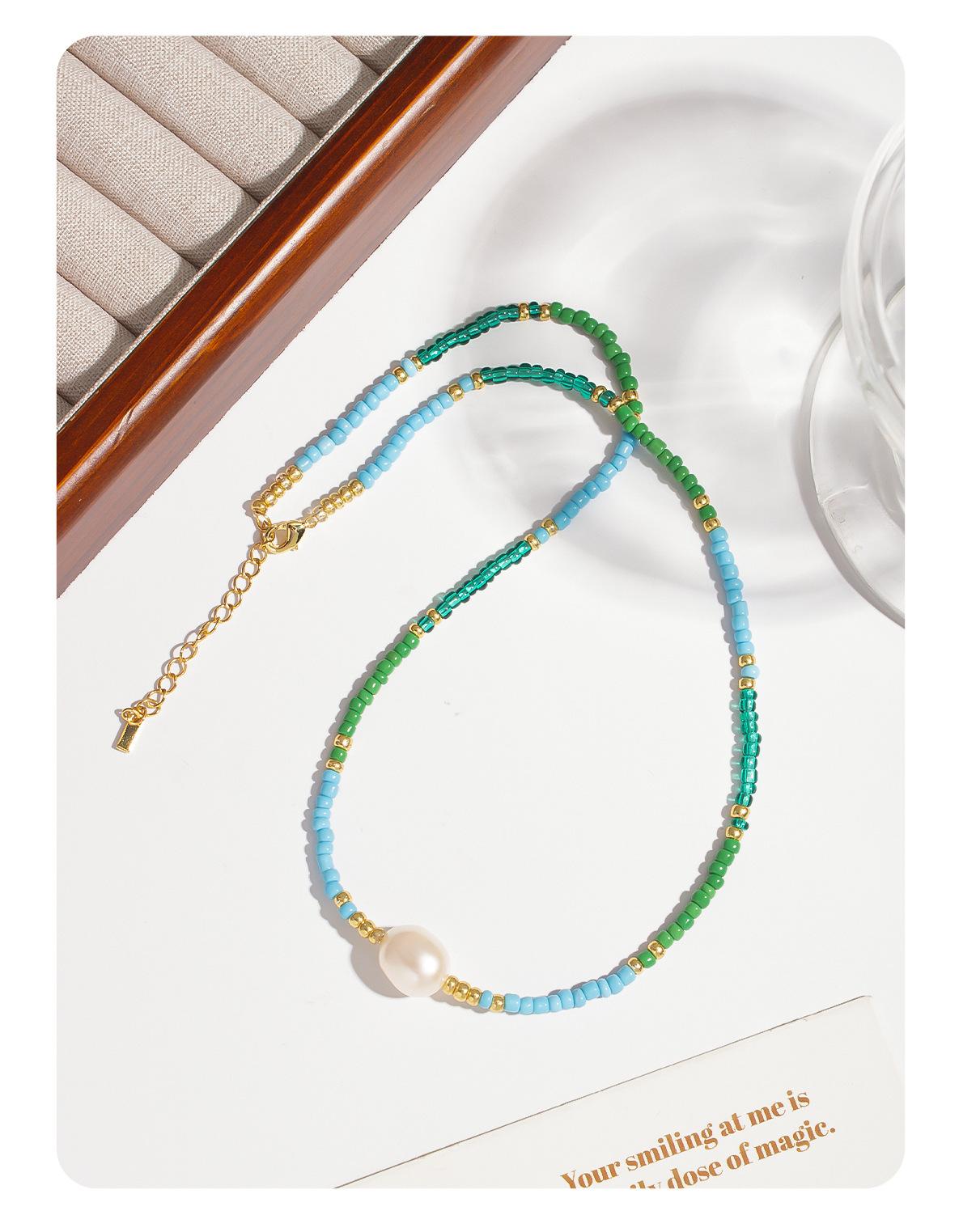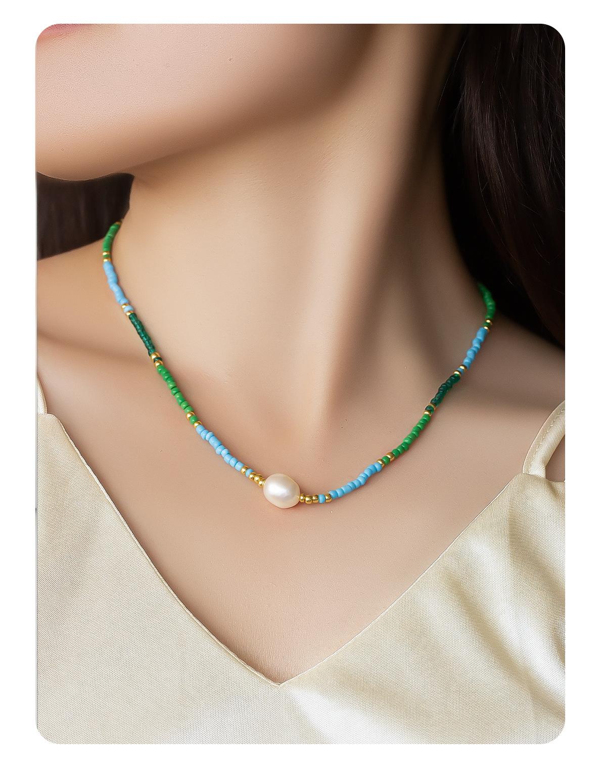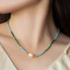Azul Verde Pedra Natural Pérola de Água Doce Colar Frisado Novo Chinês Simples Nicho Design Frisado Clavícula Cadeia