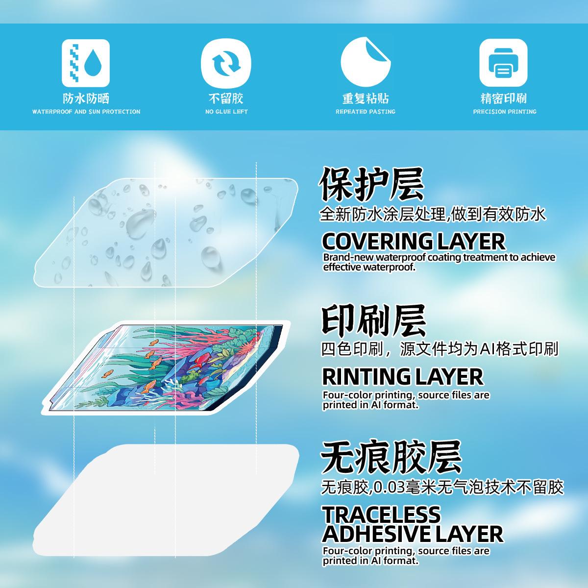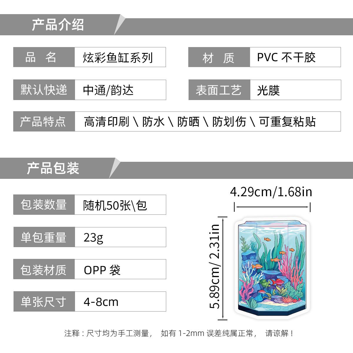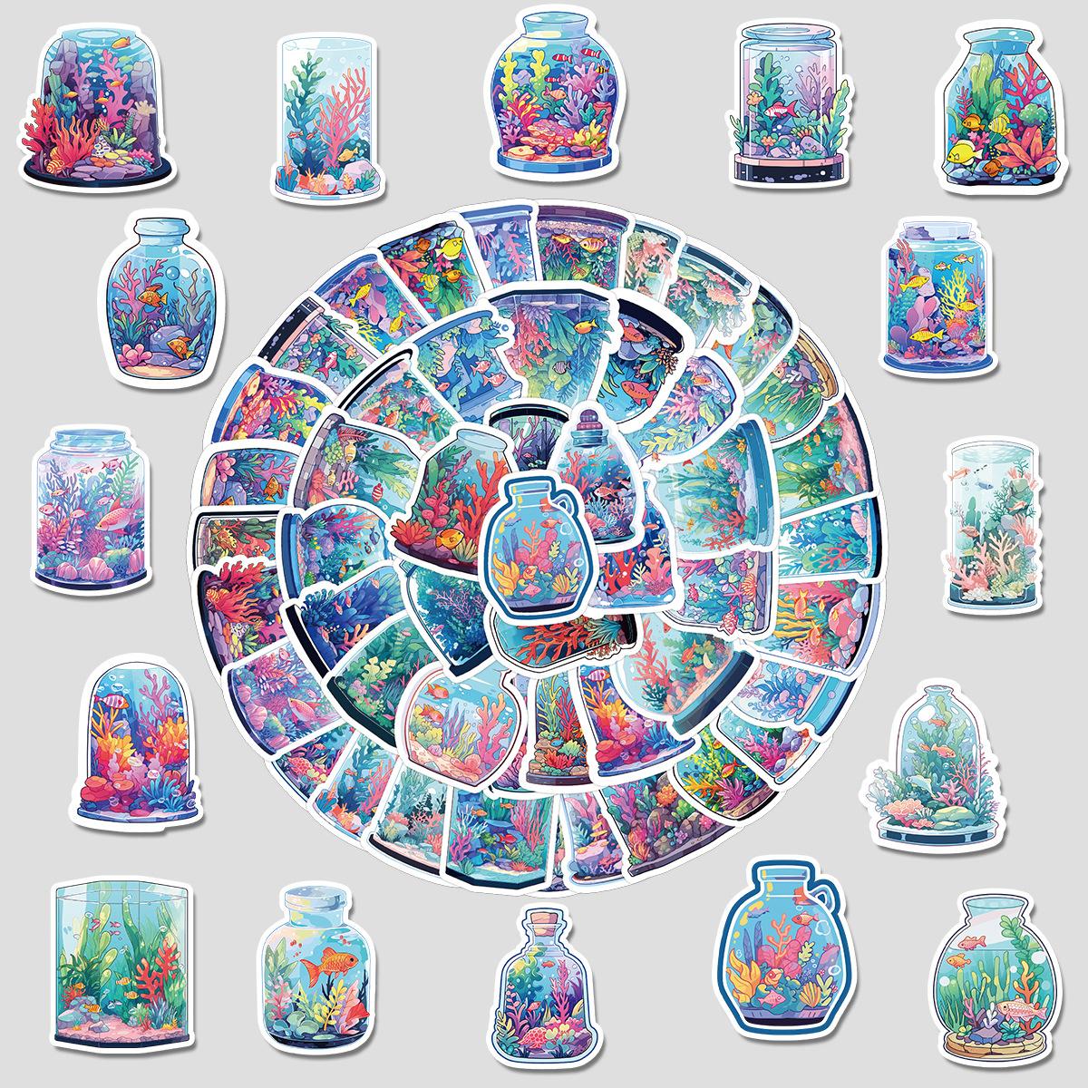 Cross-border 50 vento bonito colorido tanque de peixes graffiti adesivos copo computador bagagem adesivos decorativos à prova d' água atacado