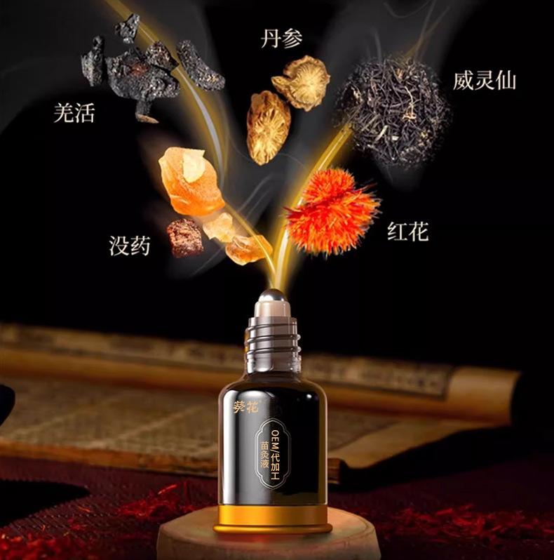 Líquido para moxabustão de mudas com esferas de rolo OEM, líquido para músculos e ossos, aquecimento, óleo essencial para plantas de pernas, ossos e articulações, líquido para dor à base de ervas, processamento