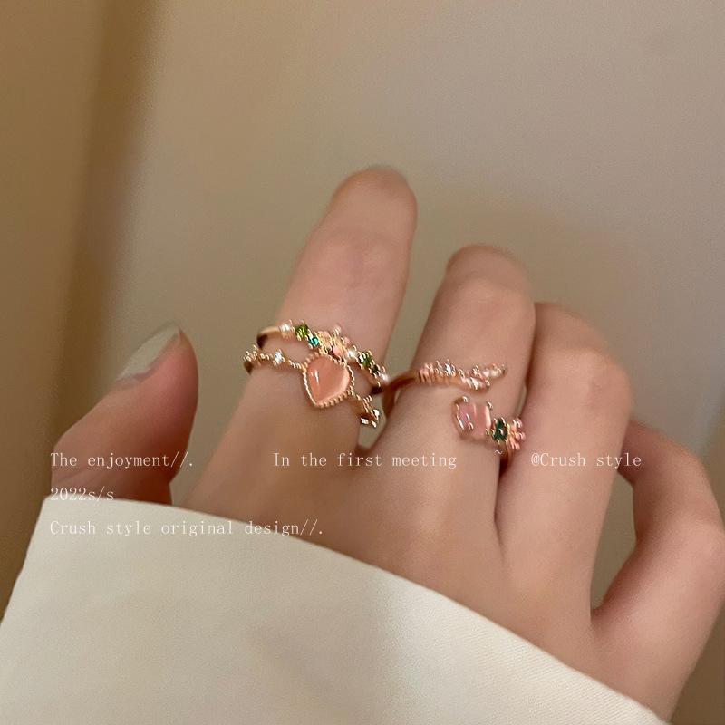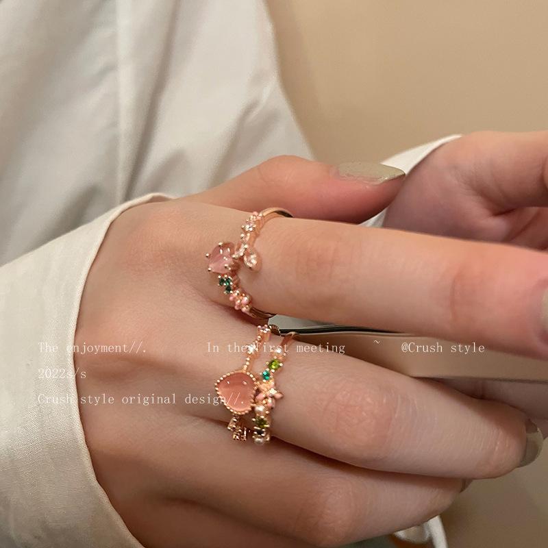 Anel Aberto de Zircônia Amor Camada Dupla Design Doce Nicho Anel de Dedo de Alta Qualidade Celebridade da Internet Anel Ajustável