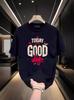 Camiseta de manga curta de algodão pesado para homens de verão nova moda impressa em torno do pescoço micro solto para todos os jogos casual de meia manga comprida