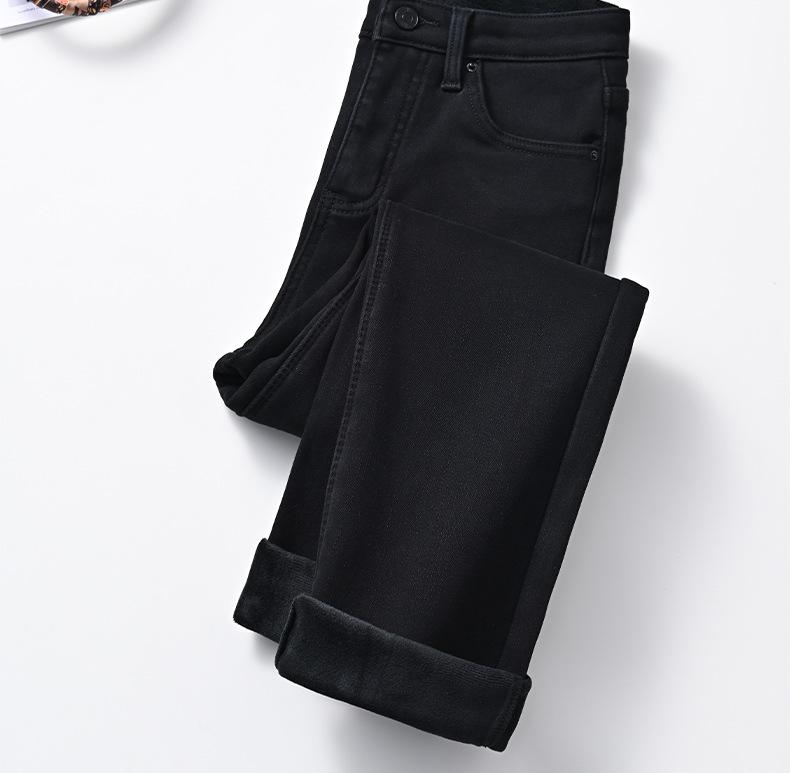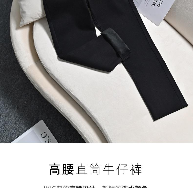 2023 outono e inverno cintura alta novo jeans preto reto feminino versátil emagrecimento stretch pipe calças francês