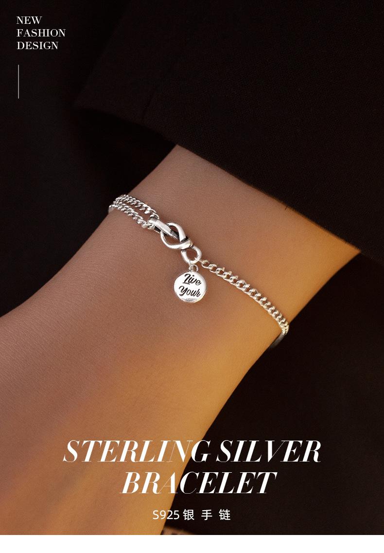 Pulseira Corrente Cubana Prata Esterlina S925 Banyan Tree Redonda Letra da Marca Feminina Combina com Tudo Personalidade Moda Nicho Acessórios de Joalheria