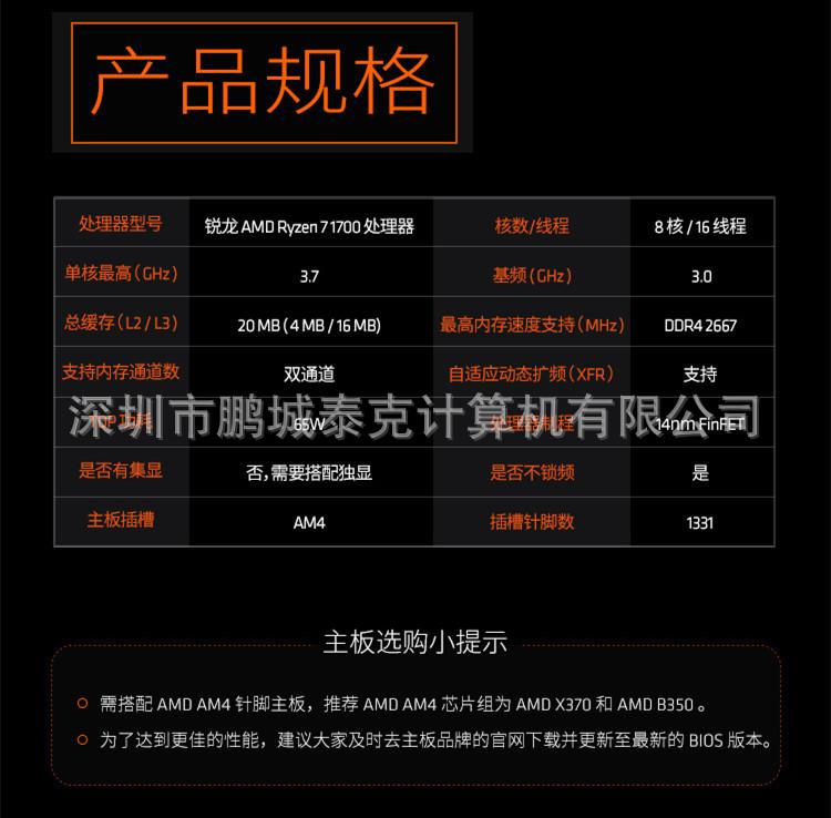 Processador AMD Ryzen 7 1700 8 núcleos AM4 soquete 3.0GHz CPU em caixa
