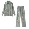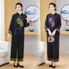 Moda Plus Size Novo Estilo Chinês Estilo Nacional Terno para Mulheres 2024 Outono Novo mm Gordo Casual Moletom Bordado Botão Disco Conjunto de Duas Peças