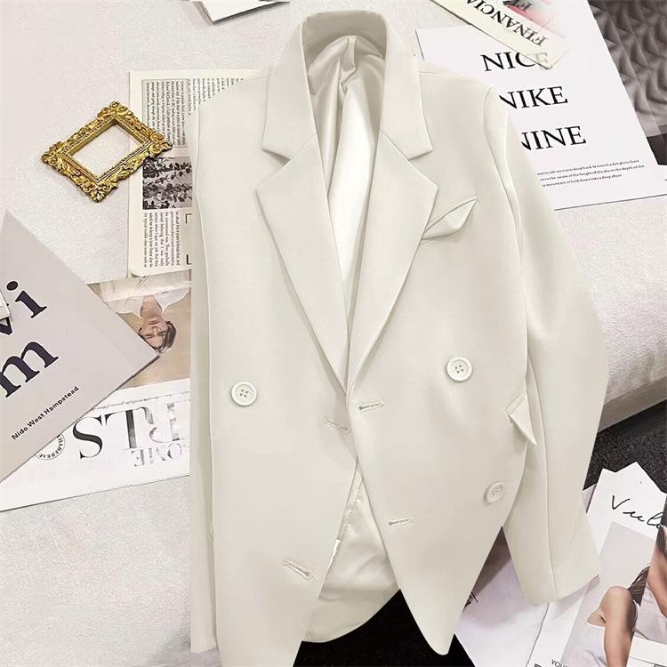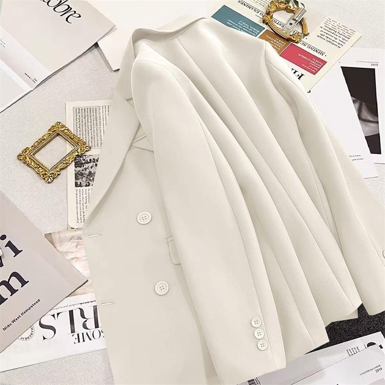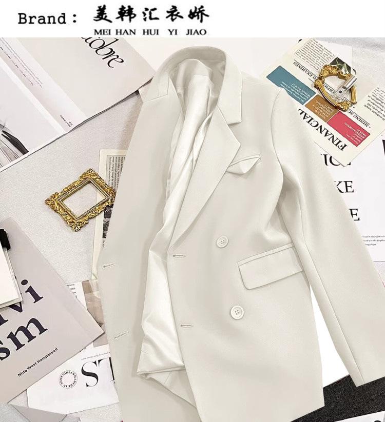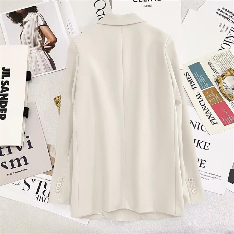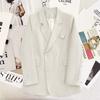 Casaco de Terno Feminino Exportação 2025 Primavera & Outono Novo Estilo Coreano Fashion Elegante Casual Fivela de Metal Branco Terno Pequeno Feminino