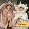 Chapéu Feminino Inverno Bonito Orelhas de Raposa Cachecol de Pelúcia Uma Peça Quente Engrossado Pescoço À Prova de Frio Conjunto de Duas Peças