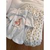 Cartoon Estilo Coreano Nova Chegada Pijamas terno Feminino Solto Verão Manga Curta Top Casual Calças Compridas Desgaste Exterior Conjunto de Duas Peças