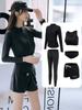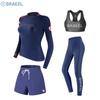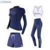 Women's navy blue round neck + letter black vest + blue long shorts four-piece set