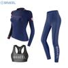 Women's navy blue round neck + letter black vest + fake two-piece blue trousers three-piece set